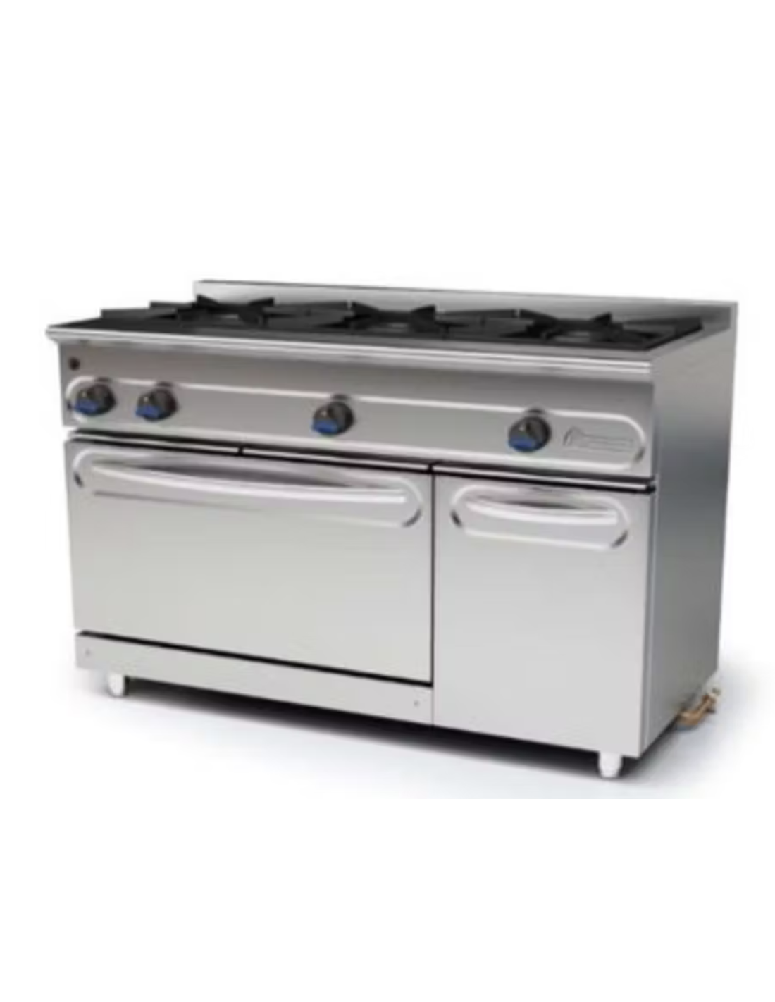 La cocina profesional Gasfrit de 3 fuegos con horno es la opción ideal para cocinas de restaurantes, hoteles y negocios de hostelería que buscan potencia, durabilidad y eficiencia. Fabricada en acero inoxidable AISI 304, garantiza resistencia, higiene y una larga vida útil incluso en uso intensivo.