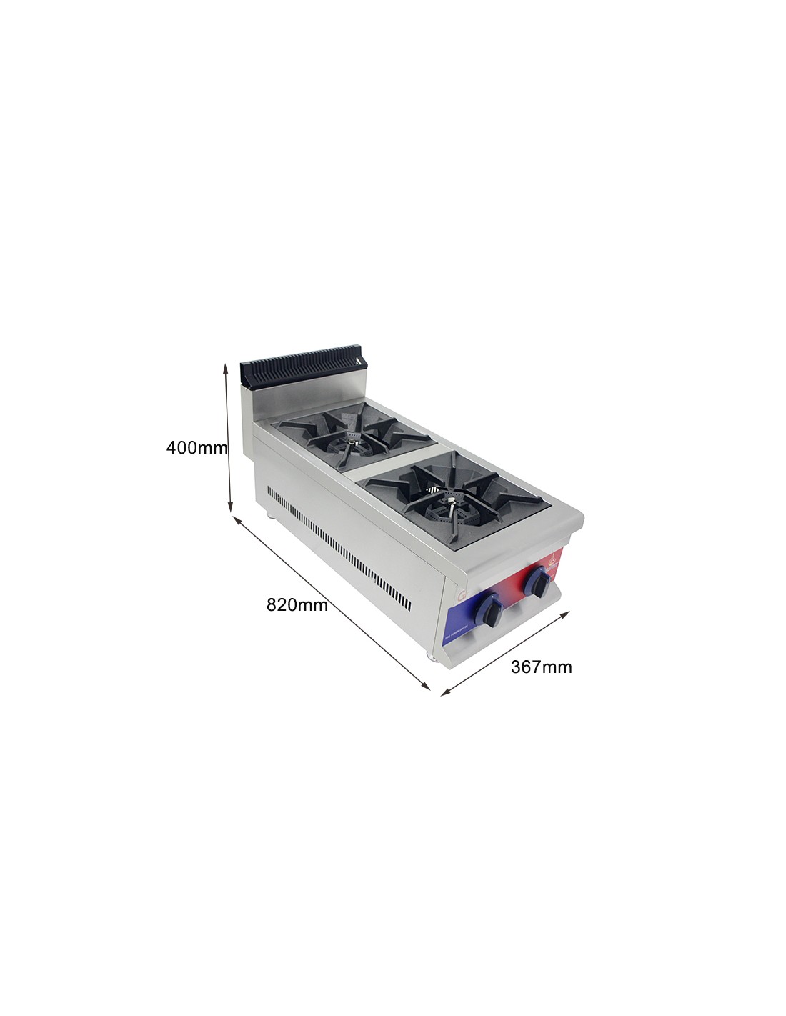 Cocina de encimera con Gas 2 fuegos , parrilla profesional industrial 365 x 825 x 420 mm