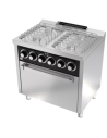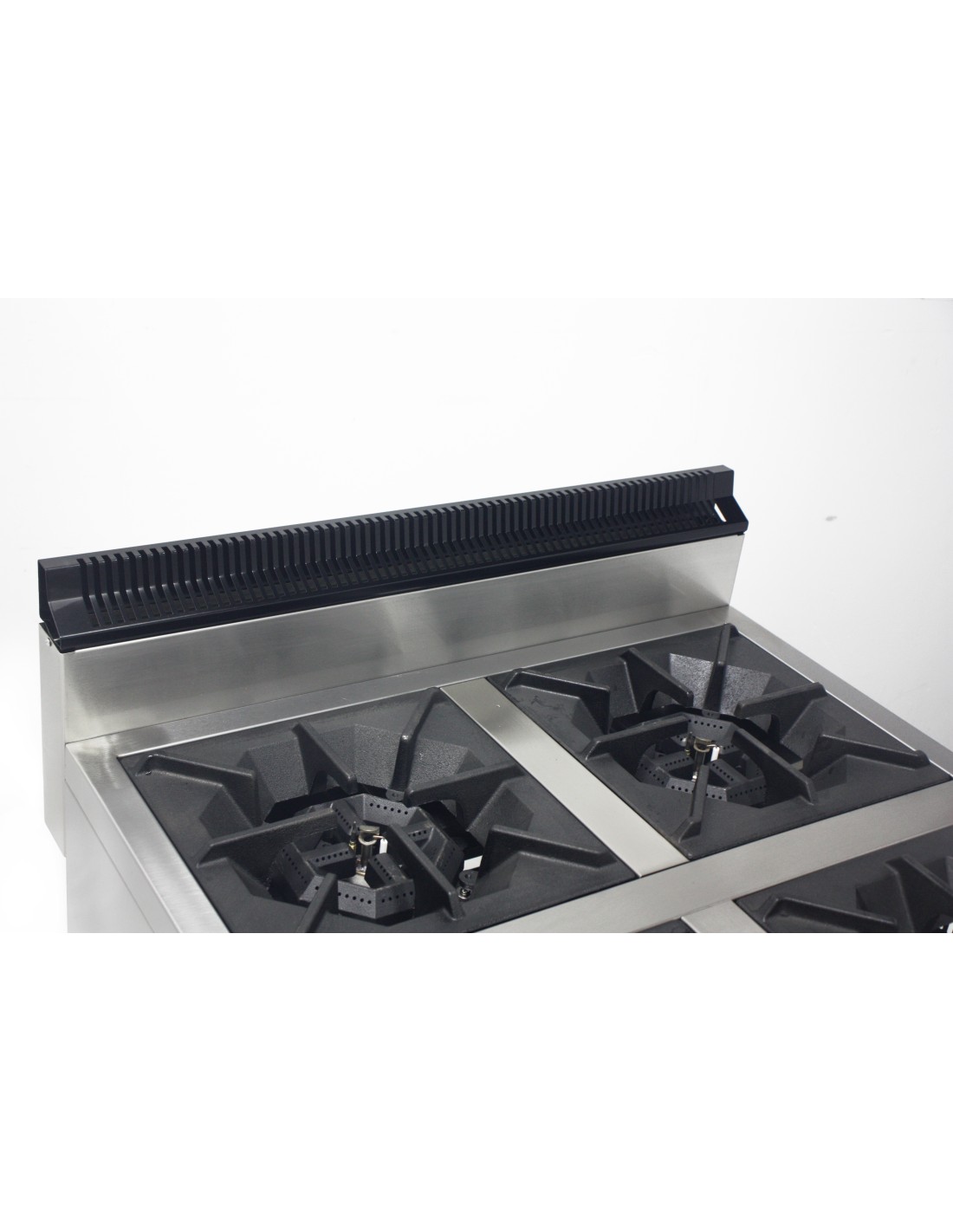 La Cocina Industrial de Sobremesa en Acero Inoxidable de 4 Fuegos está diseñada para un uso intensivo en cocinas de hostelería y negocios profesionales que requieren máxima productividad, distribución eficiente del calor y fiabilidad absoluta.