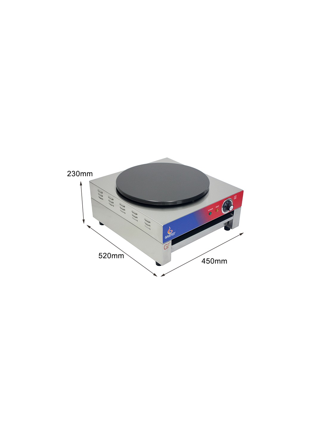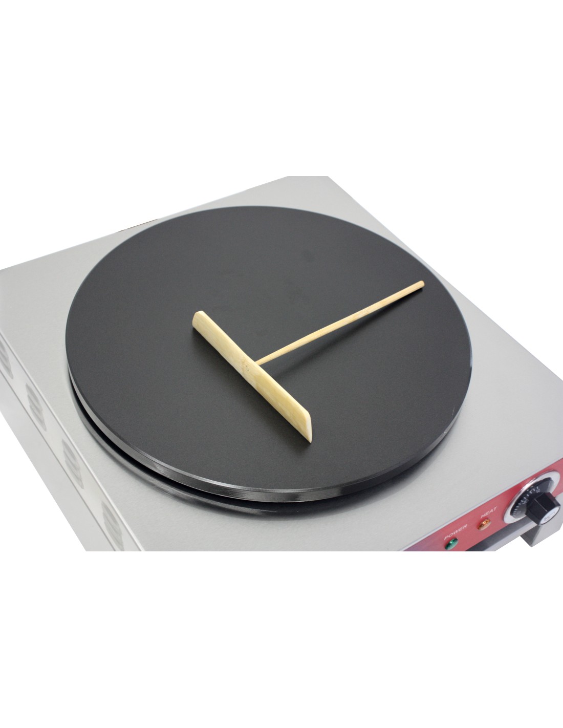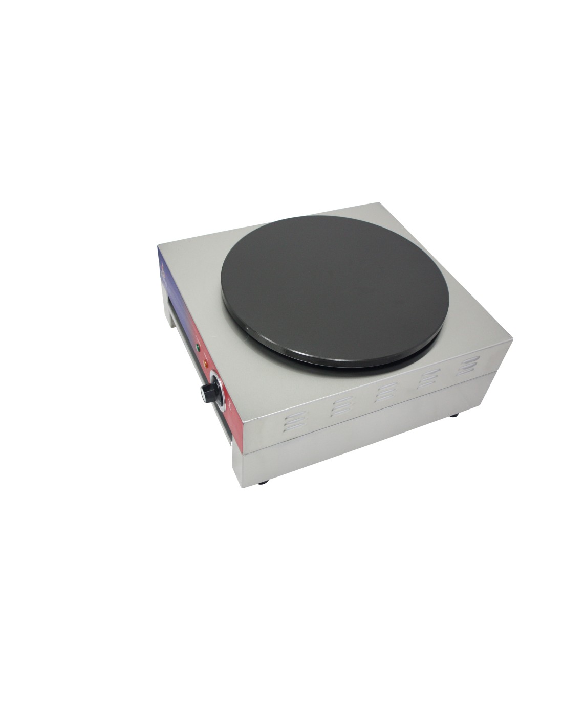 Crepera profesional electrica, 1 placa, acero inoxidable, recubierto teflón, 400 mm, 22.8 x 45 x 50 cm, hasta 300 °C, 3 kW