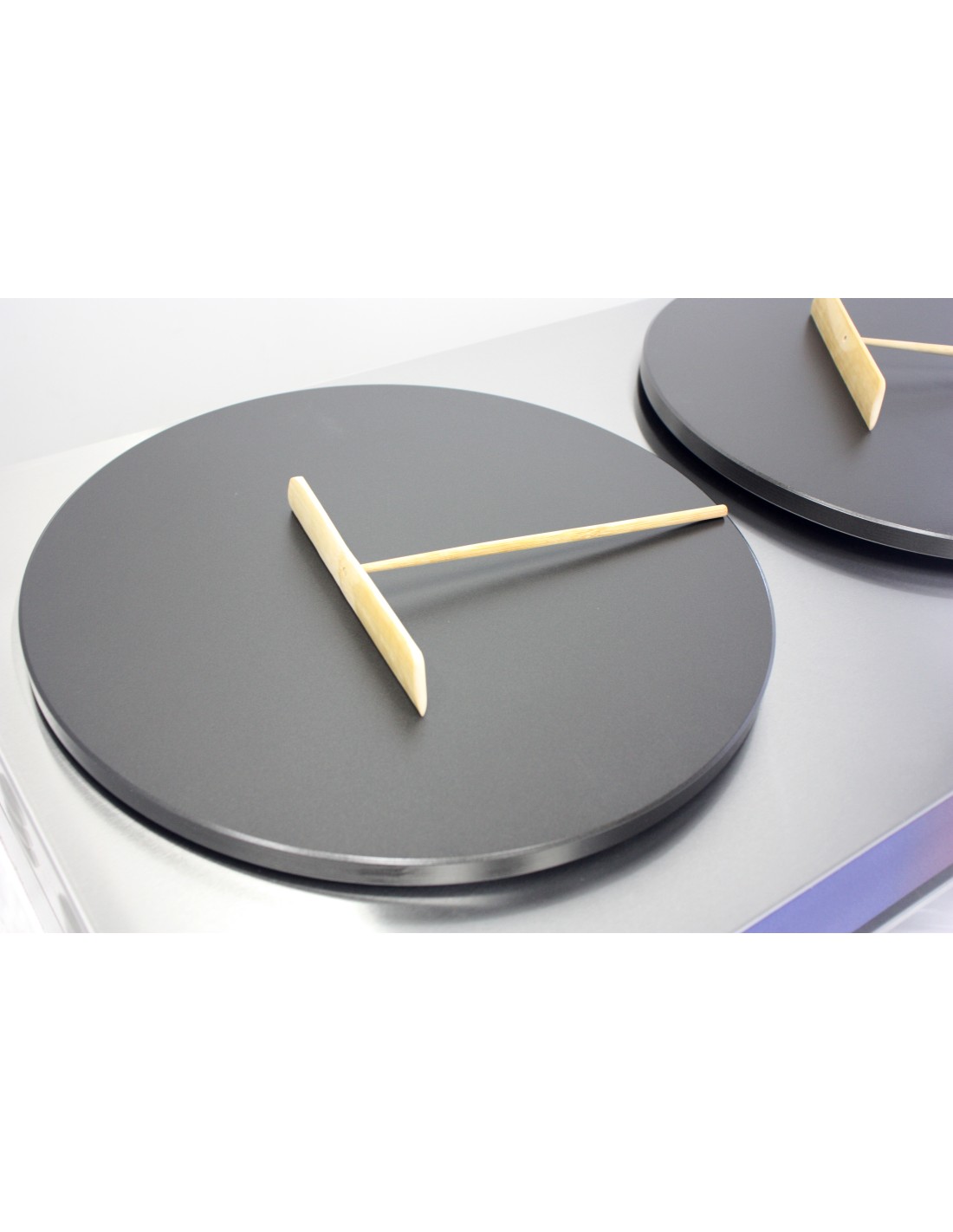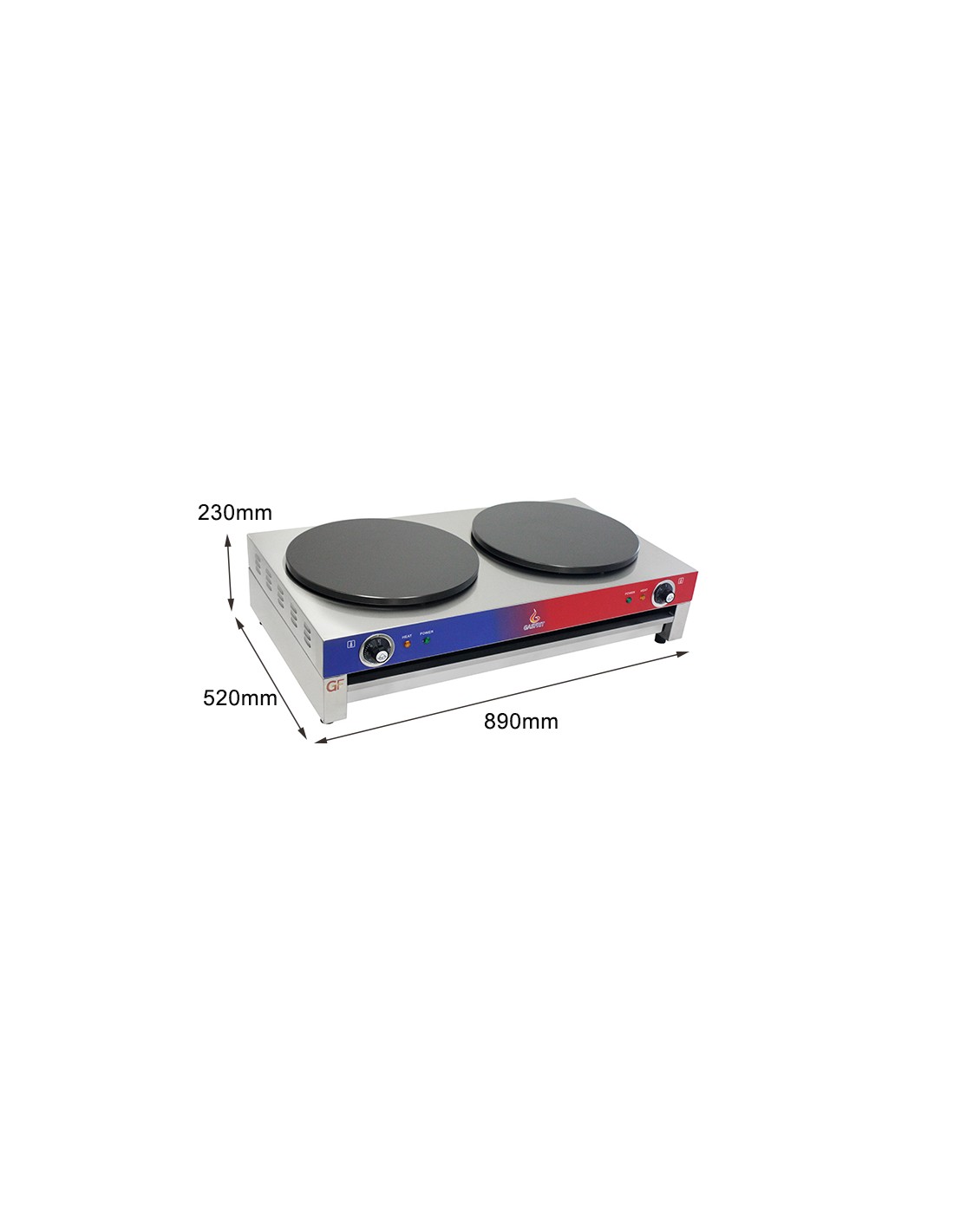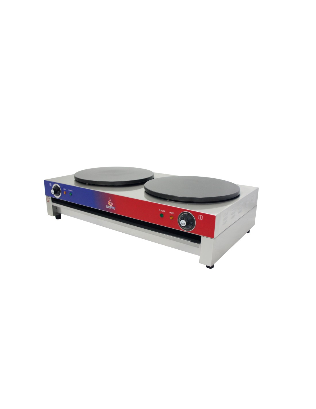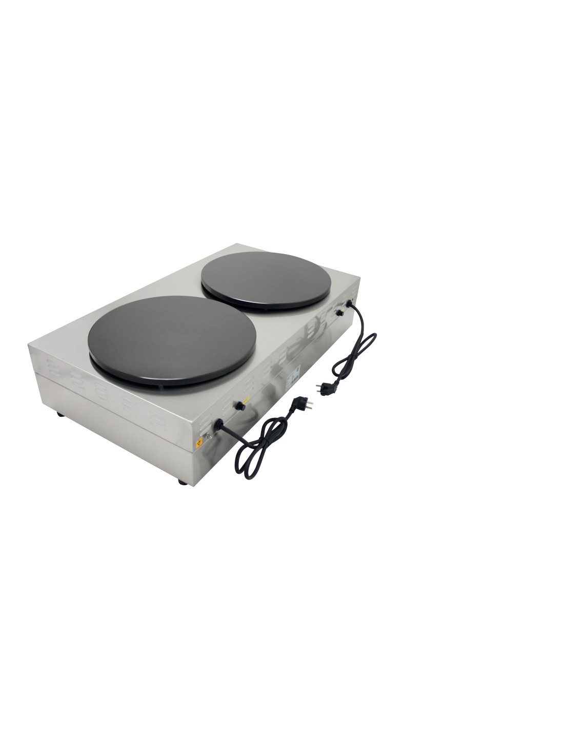 Crepera profesional electrica, 2 placa, acero inoxidable, recubierto teflón, 400 mm, 89 x 49 x 22.5 cm, hasta 300 °C, 6 kW