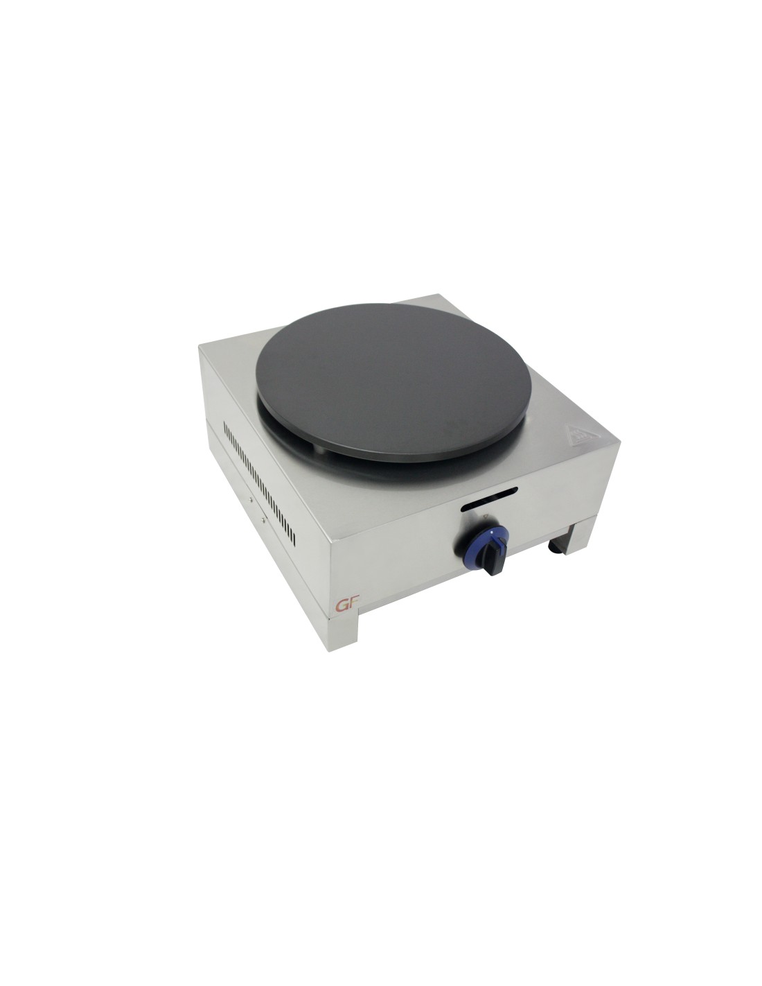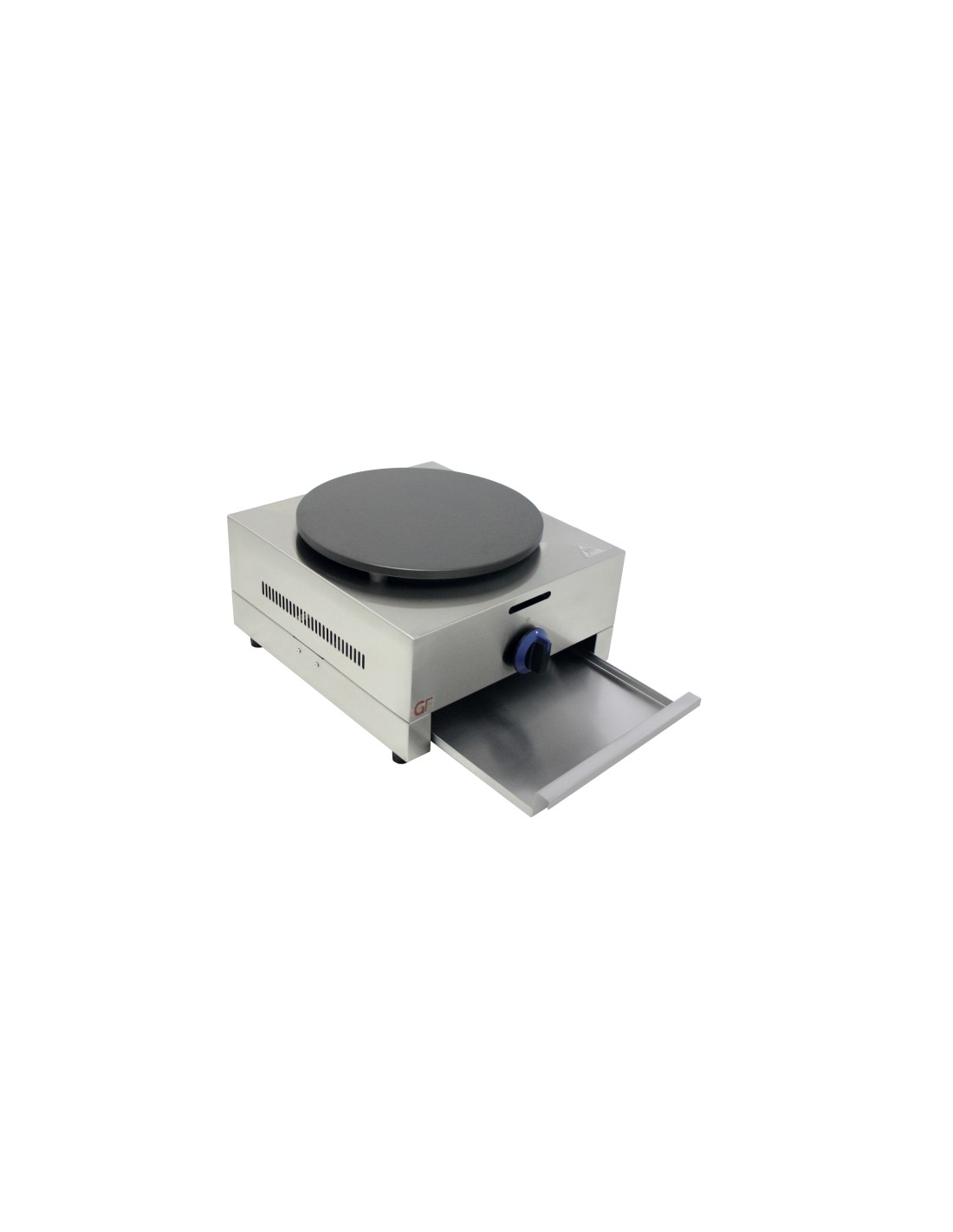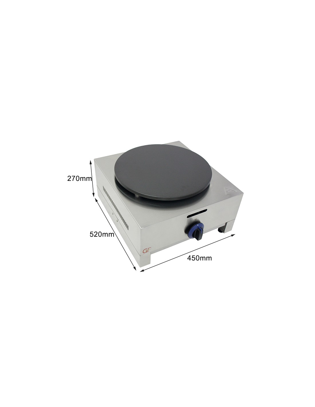 Crepera profesional a gas, 1 placa, acero inoxidable, recubierto teflón, 400 mm, 450 x 490 x 260 mm, hasta 300 °C, 3,5 kW