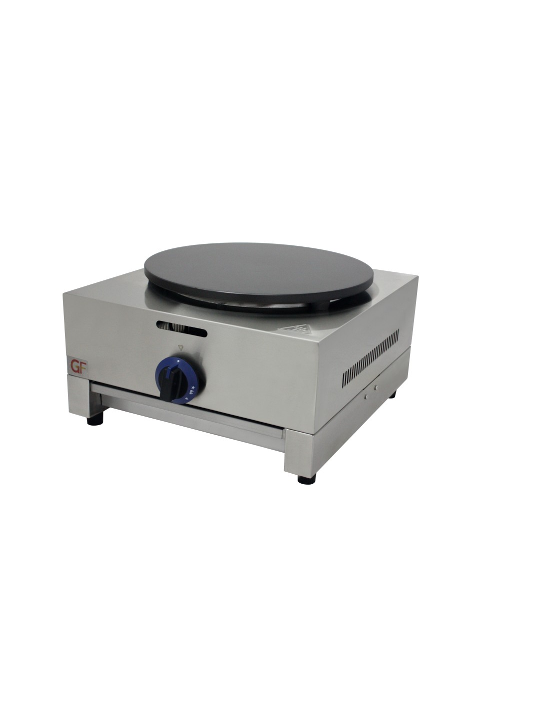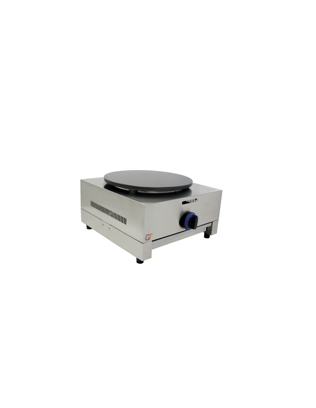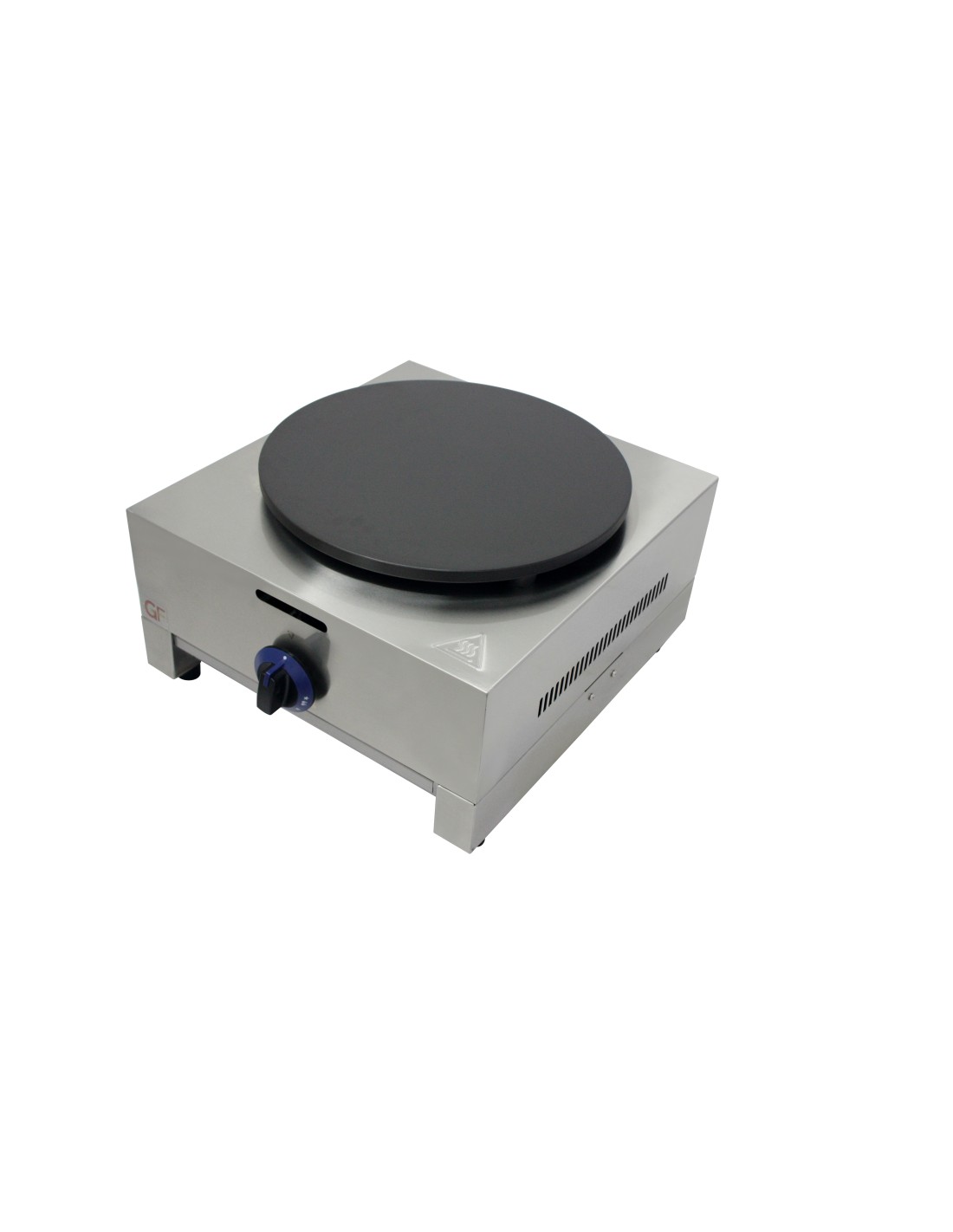 Crepera profesional a gas, 1 placa, acero inoxidable, recubierto teflón, 400 mm, 450 x 490 x 260 mm, hasta 300 °C, 3,5 kW