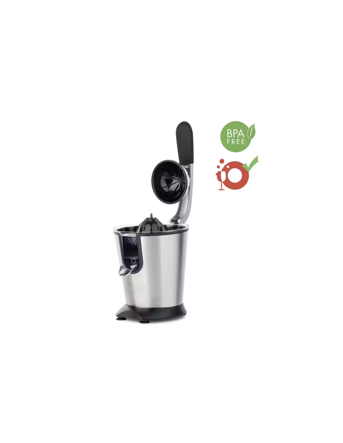 Prepara deliciosos zumos de frutas llenos de vitamina para empezar el día con mucha energía con el exprimidor eléctrico arg80; su potencía de 160 w te permite realizar todo tipo de zumos en tan sólo unos segundos; disfruta todas las mañanas de un desayuno completo. El exprimidor de zumo profesional dota de un brazo articulado que te permite imprimir con fácil idad todo tipo de zumos obteniendo un acabado perfecto y es tan silecioso que podrás utilizarlo al punto de la mañana sin molestar a los demás.su sistema antigotas permite vertir el zumo exprimido directamente en el vaso sin desperdiciar ni una gota; además, la exprimidora eléctrica es muy fácil de limpiar; sólo tendrás de desmontarla y meterla en el lavavajillas.el exprimidor de acero inoxidable es ideal para todo tipo de cocinas.disfruta de zumos recién exprimidos con el exprimidor sin bpa cada mañana y guárdalo en cualquier rincón gracias a sus demensiones de 26 x 18 x 29 cm. Características:potente brazo articuladosistema anti gotasexprimidor silenciosoacero inoxidablefácil de limpiar y compatible con el lavavajillas. sin bpa potencía: 160 w.