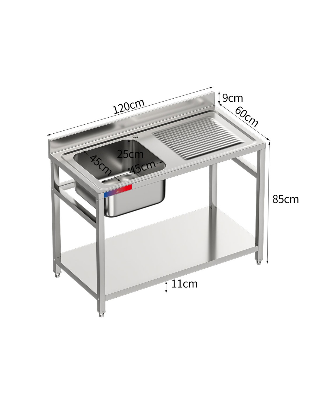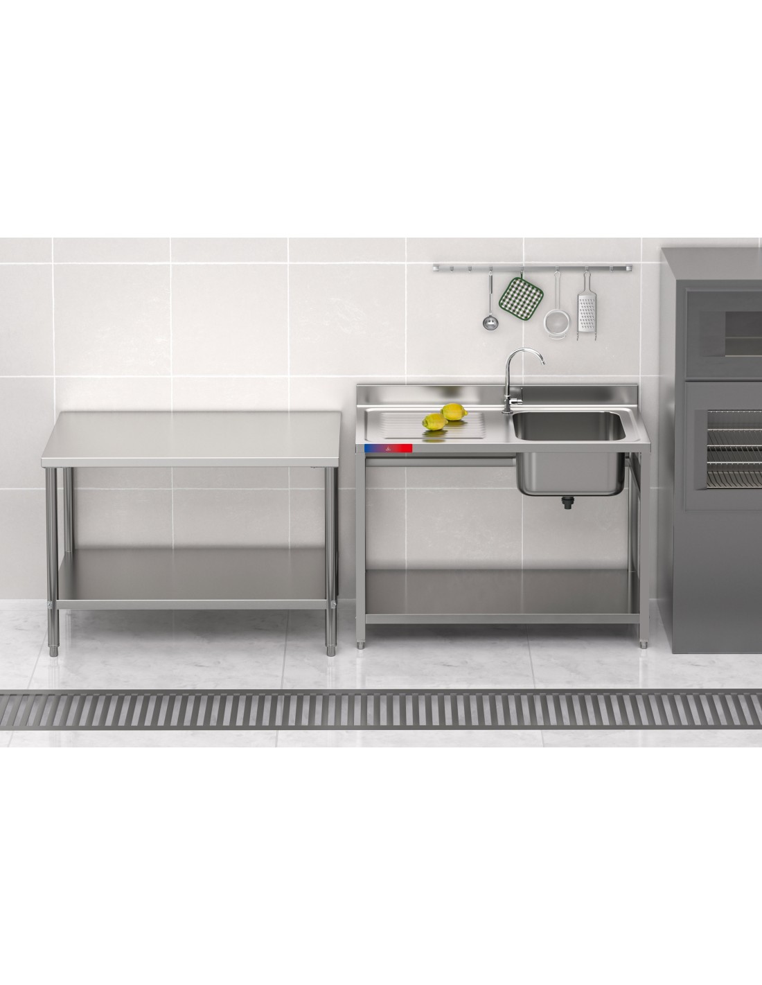 Fregadero bajo barra 1 seno y 1 escurridor industrial acero inoxidable balda y grifo incluido1200 x 600 x 850 mm