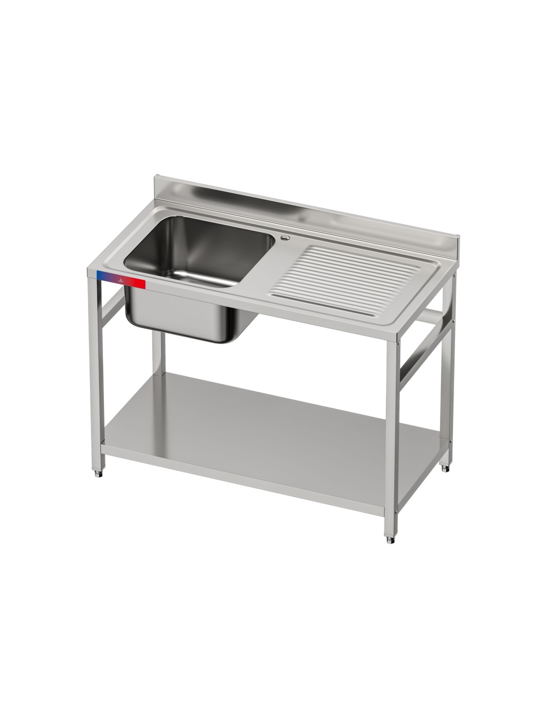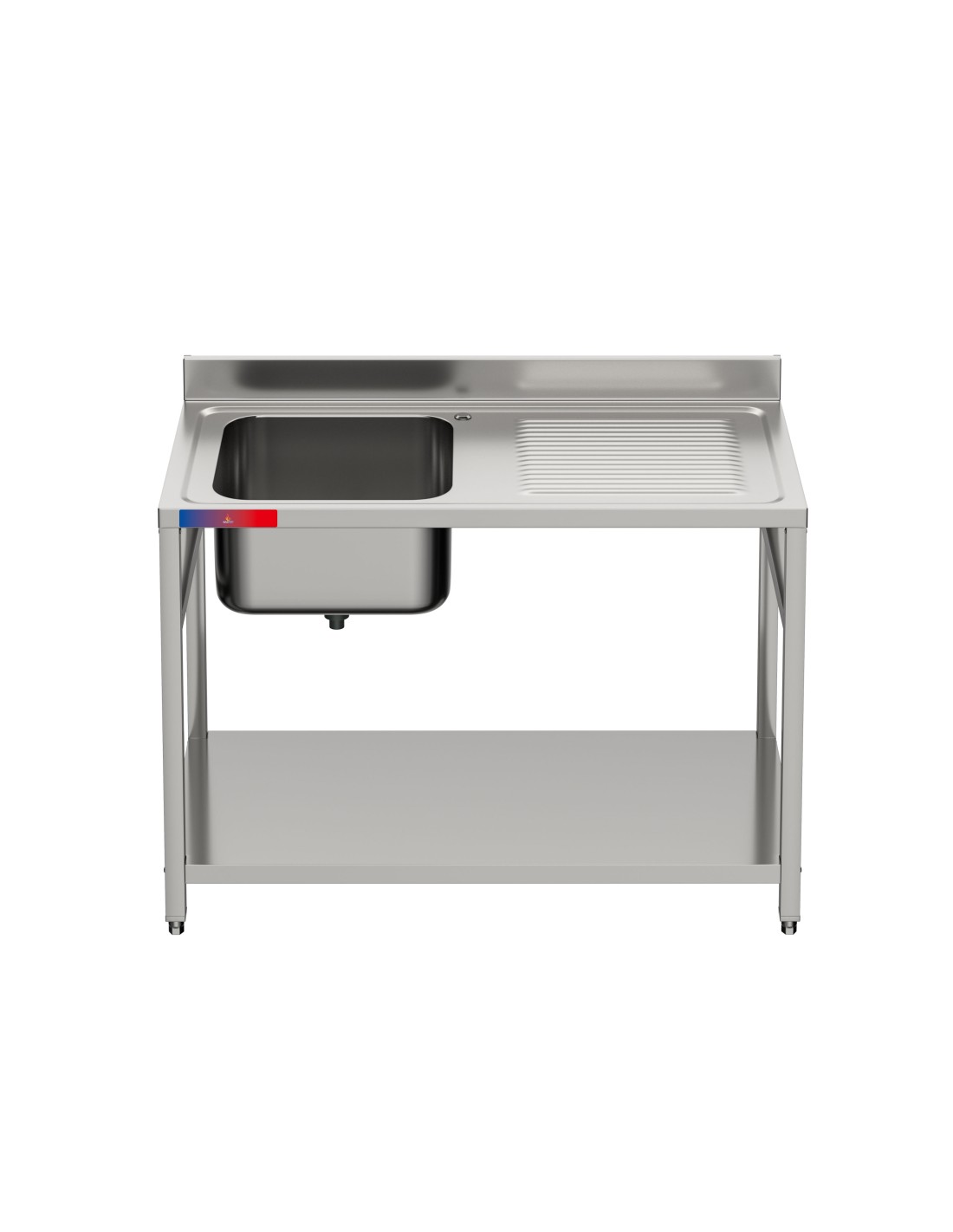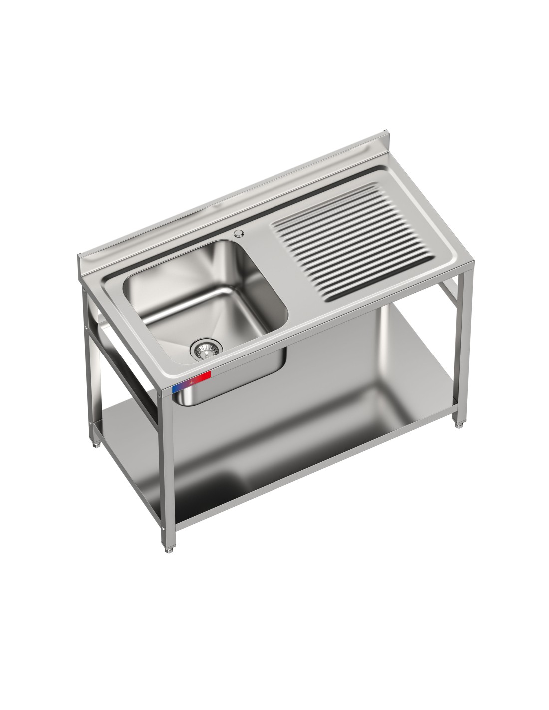 Fregadero bajo barra 1 seno y 1 escurridor industrial acero inoxidable balda y grifo incluido 1200 x 600 x 850 mm