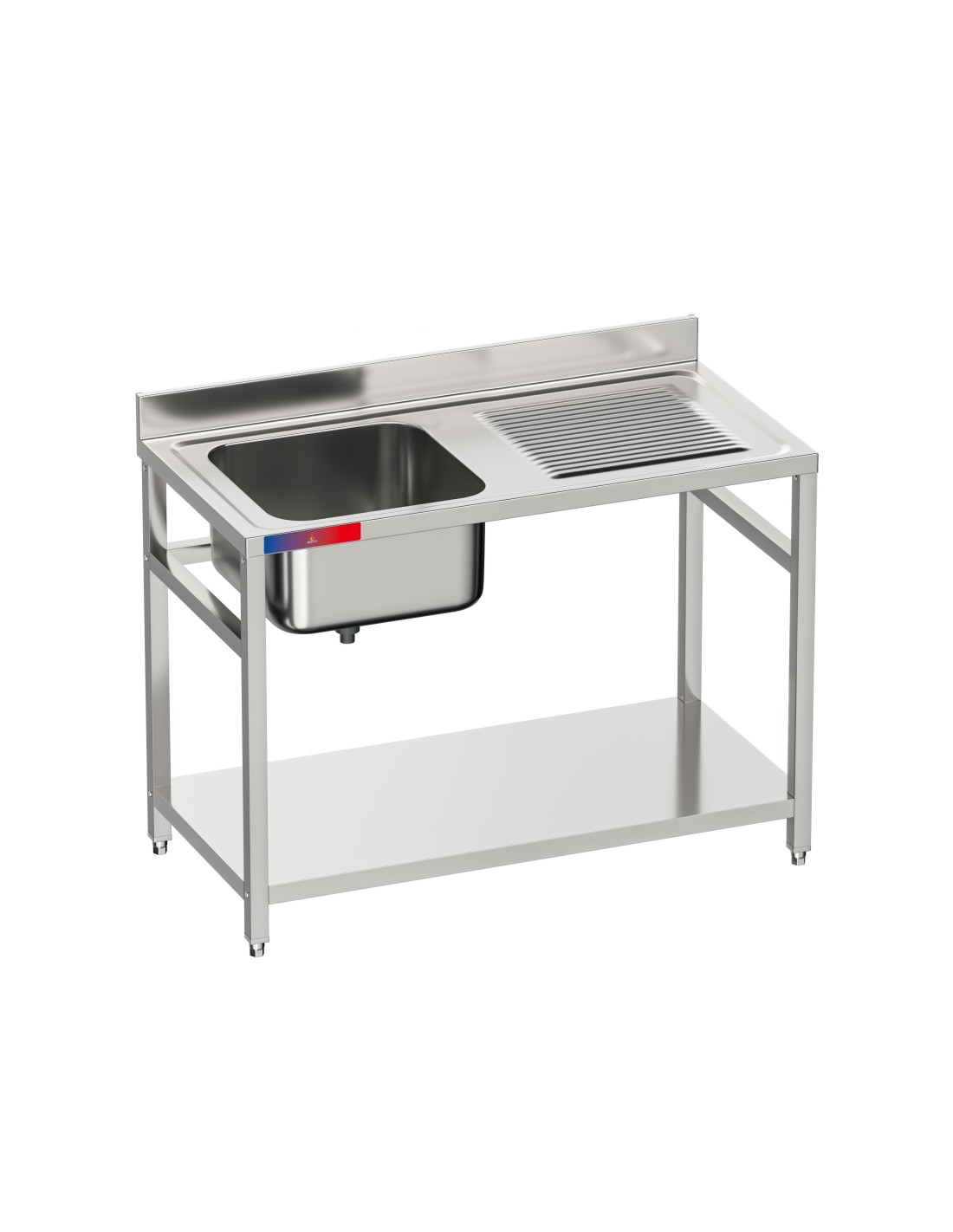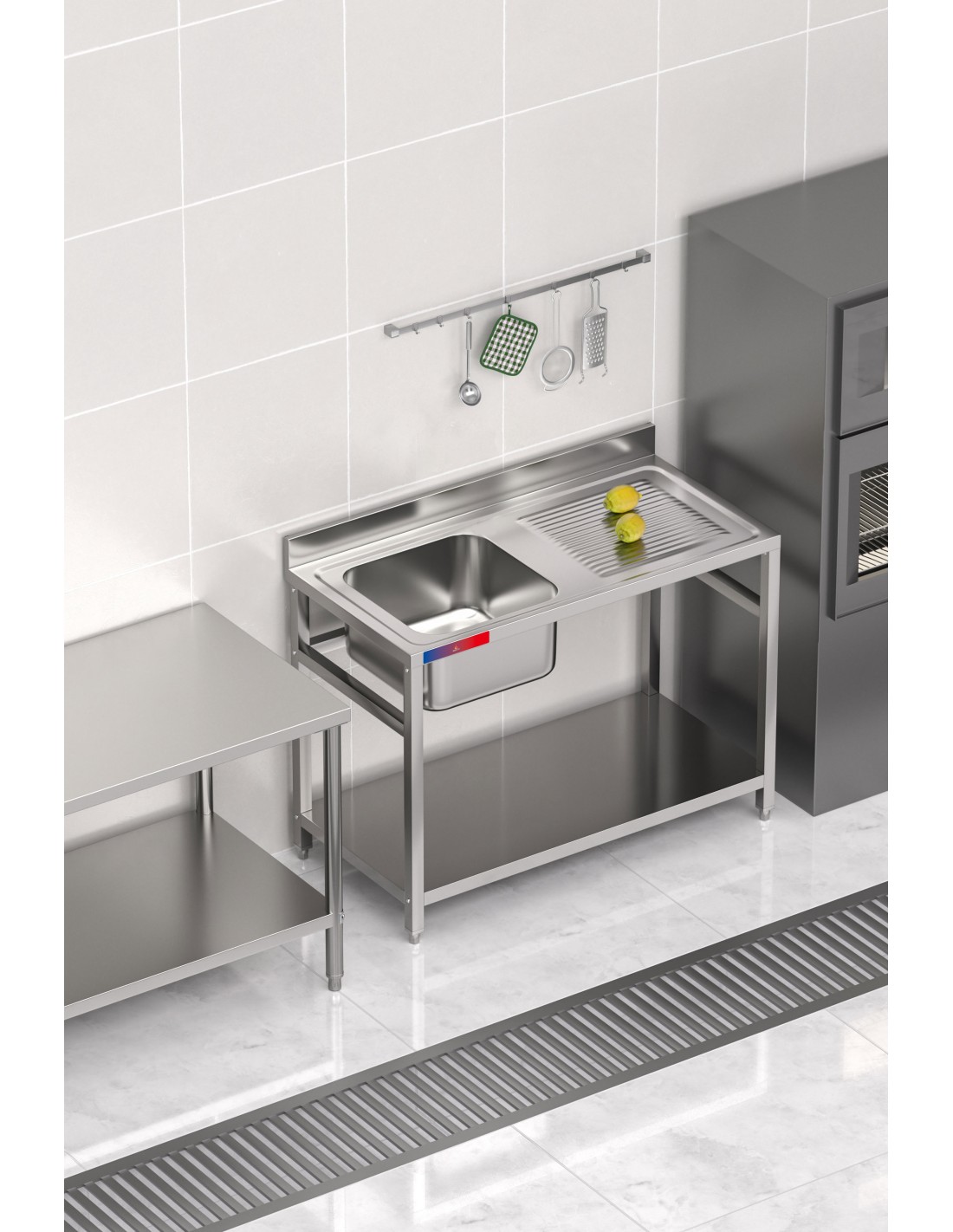 Fregadero bajo barra 1 seno y 1 escurridor industrial acero inoxidable con balda 1200 x 600 x 850 mm