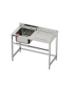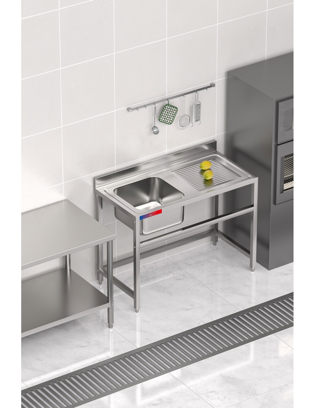Fregadero 1 seno y 1 escurridor, industrial acero inoxidable 1200 x 600 x 850 mm