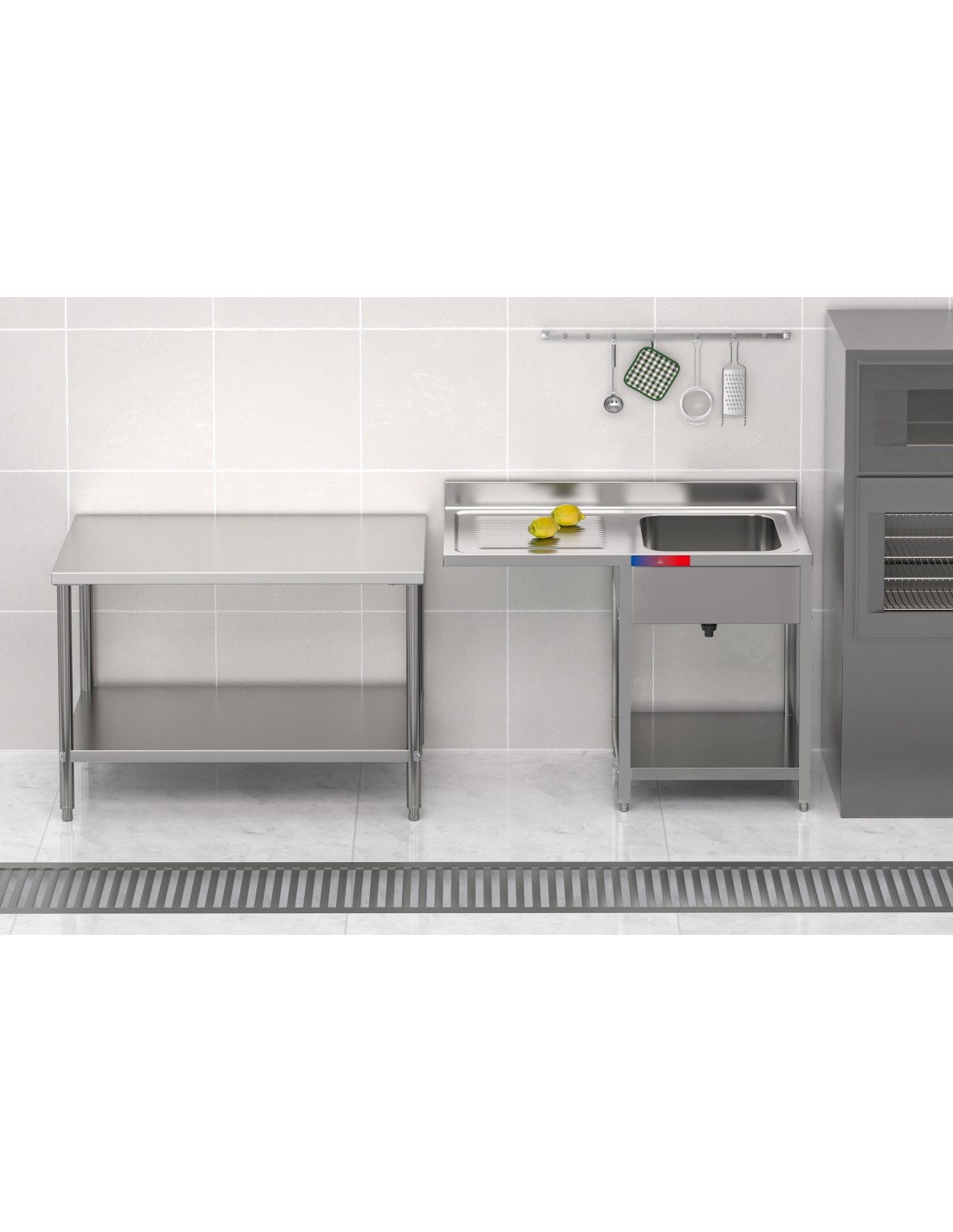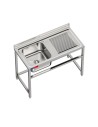 Fregadero bajo barra 1 seno y 1 escurridor, incluye grifo dos aguas industrial acero inoxidable 1200 x 600 x 850 mm