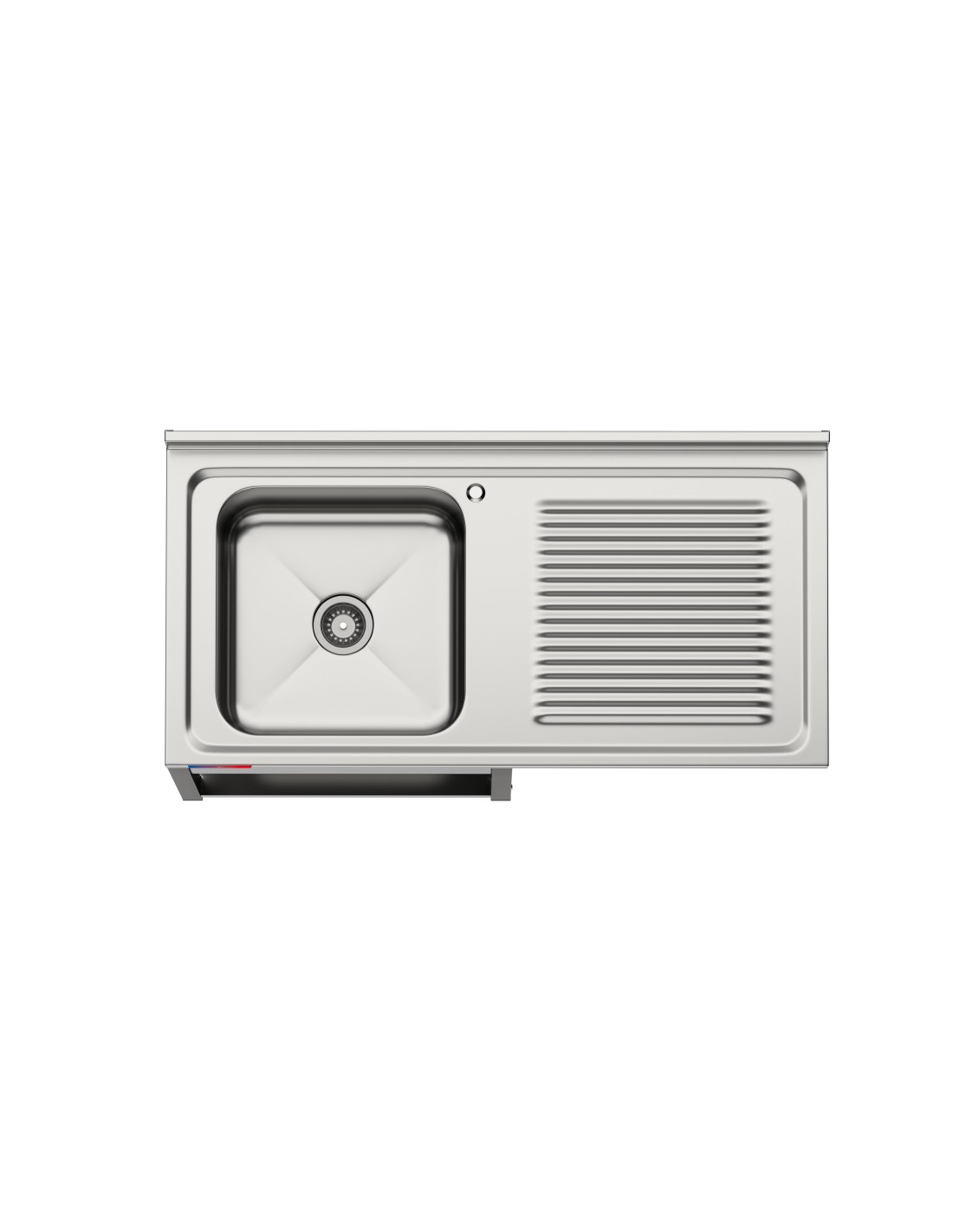 Su estructura incorpora 1 seno profundo con escurridor lateral, ideal para el lavado y manipulación de utensilios o vajilla, e incluye un grifo de dos aguas, ofreciendo una solución completa para el trabajo diario.