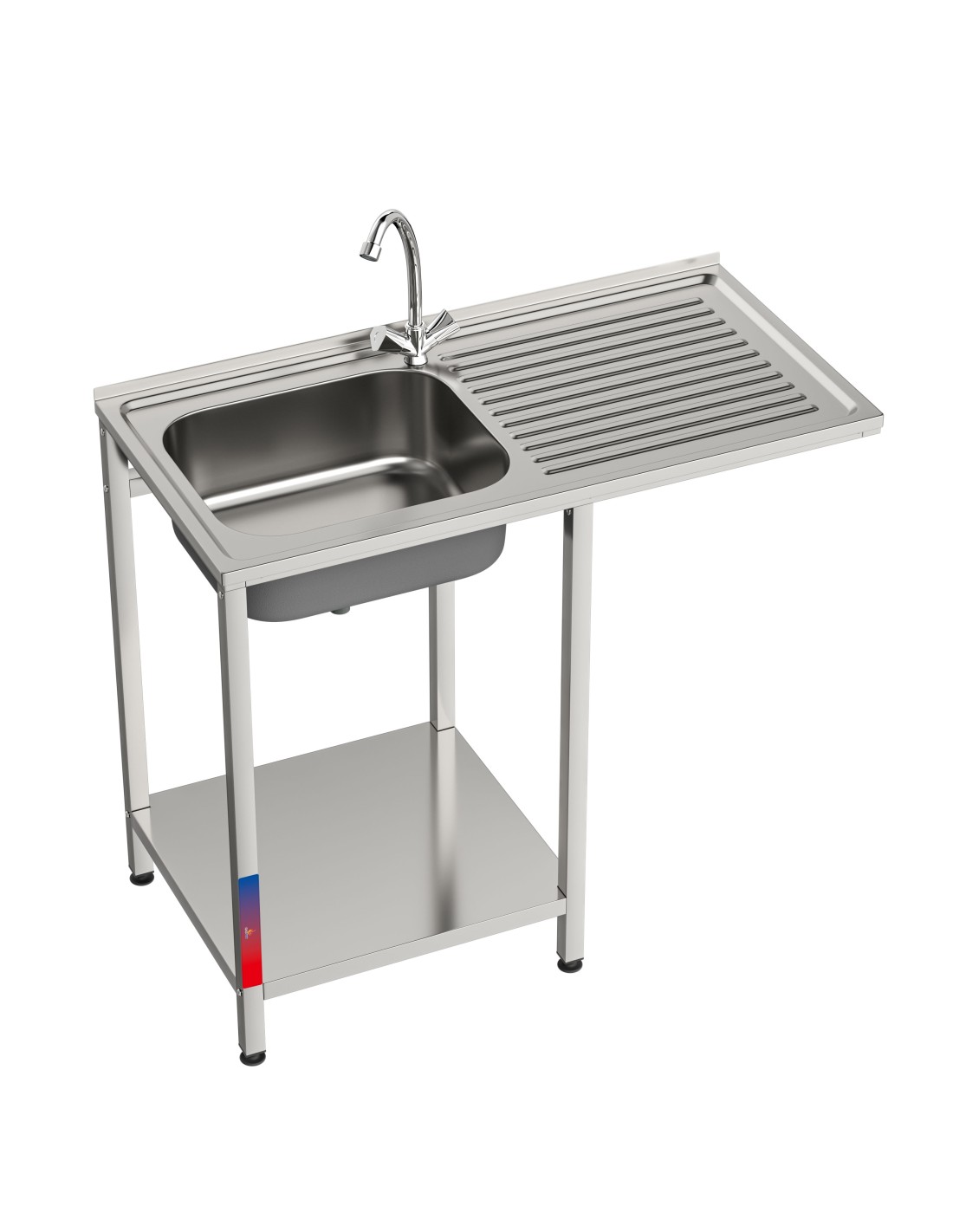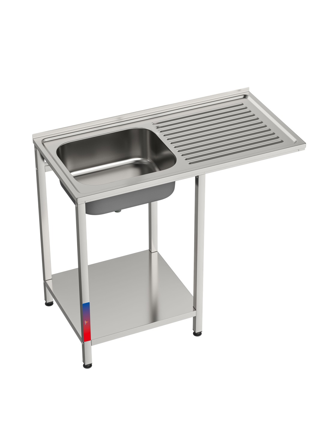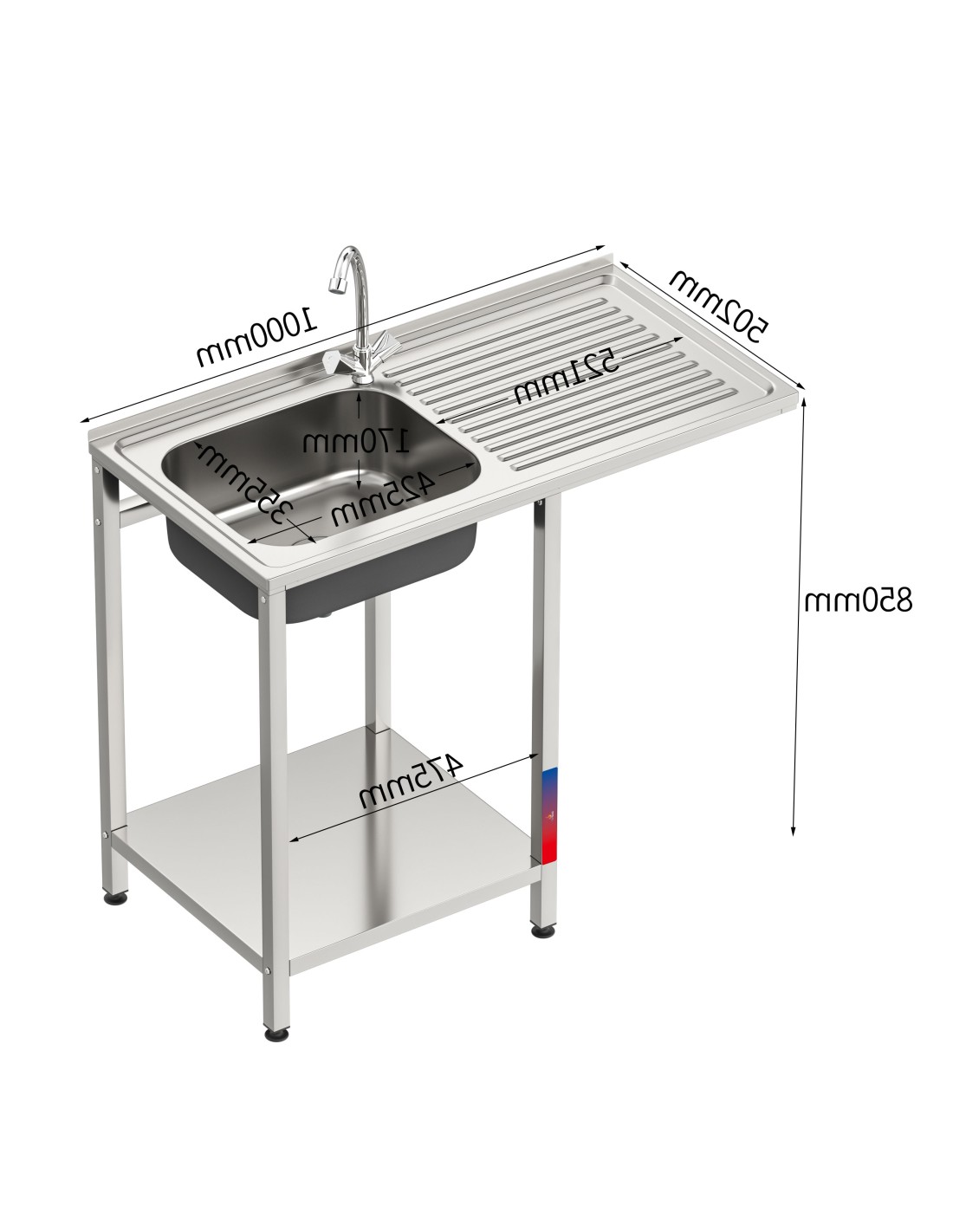 Fregadero bajo barra 1 seno y 1 escurridor industrial acero inoxidable hueco lavavasos 1000 x 500 x 850 mm