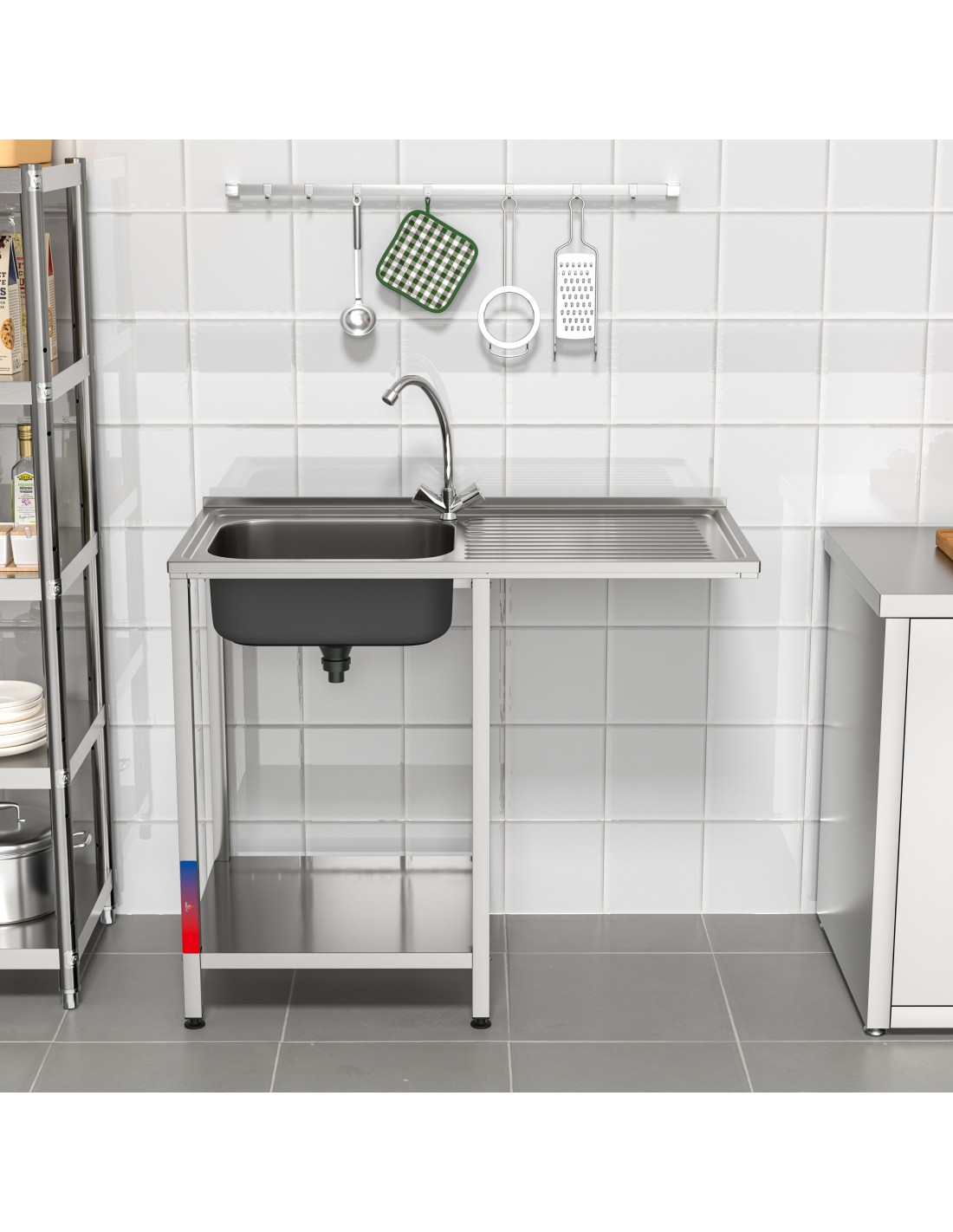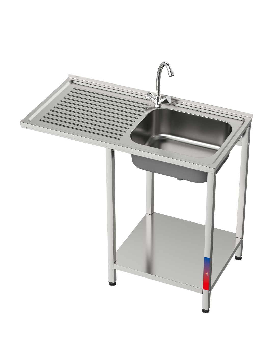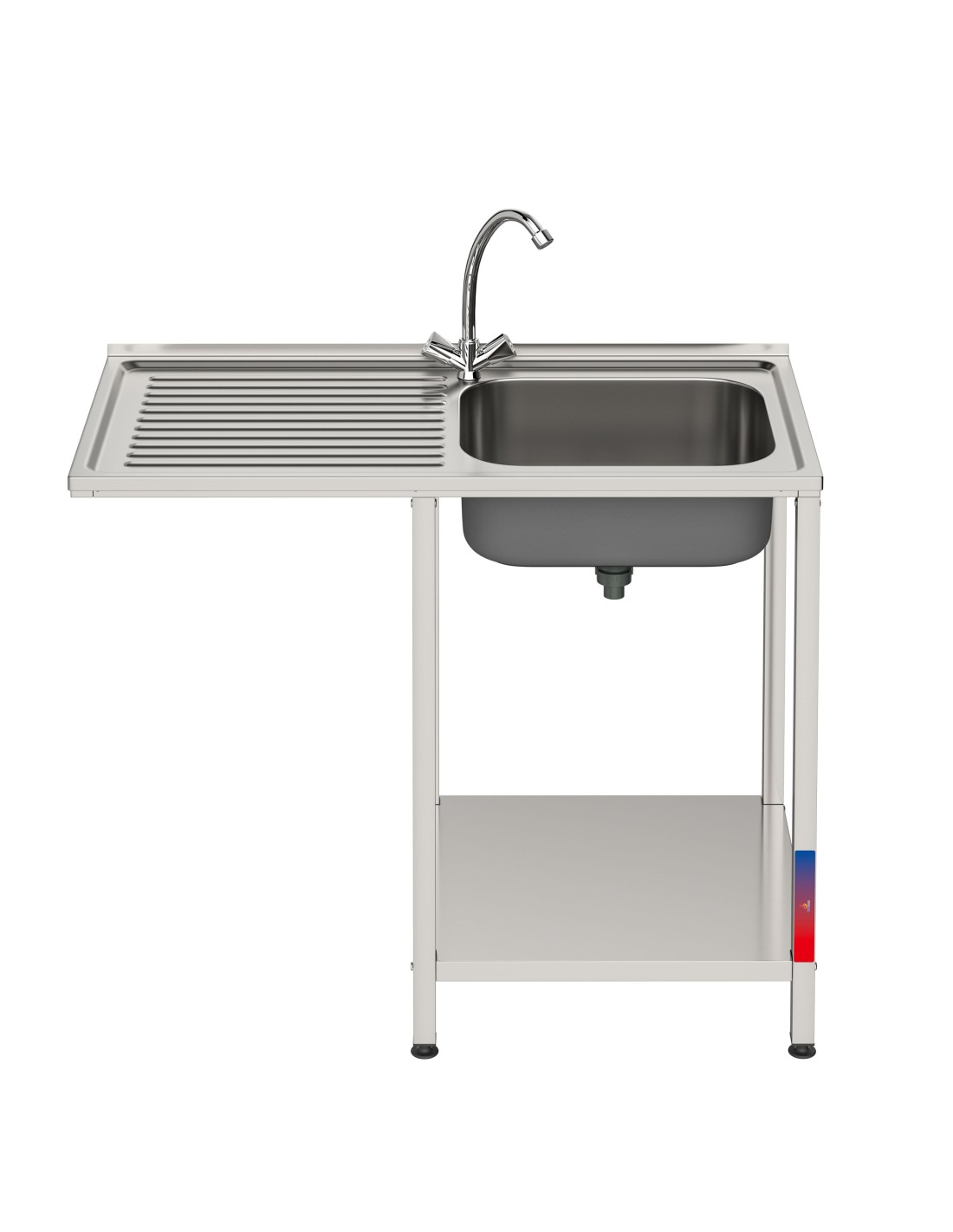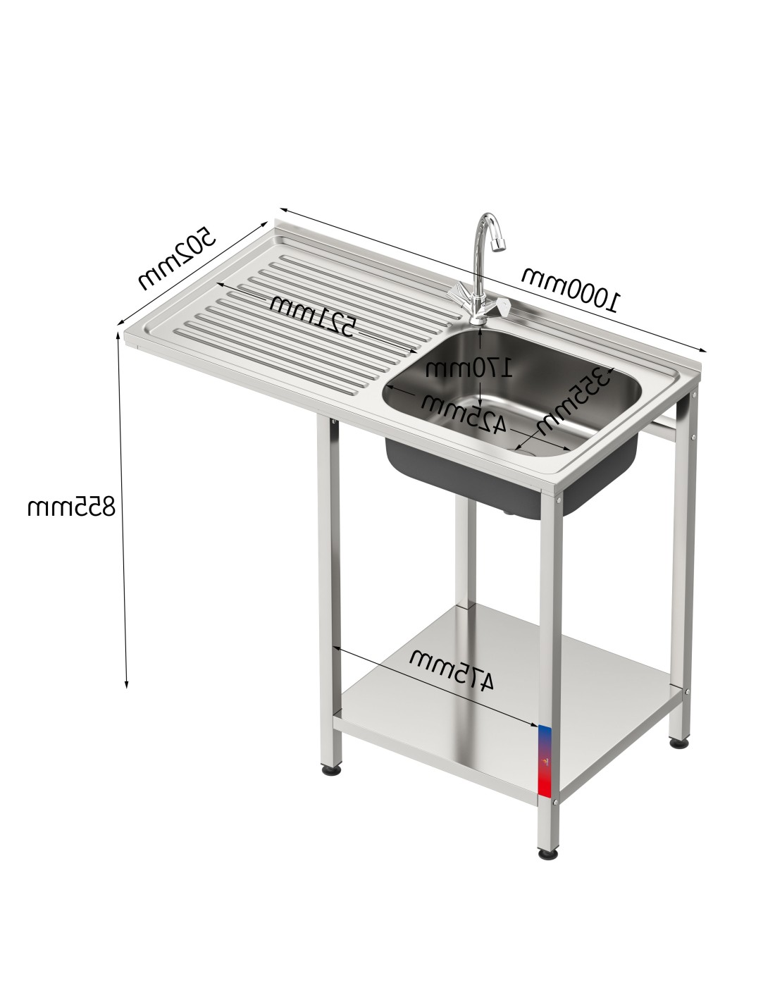 Fregadero bajo barra 1 seno y 1 escurridor industrial acero inoxidable hueco lavavasos 1000 x 500 x 850 mm
