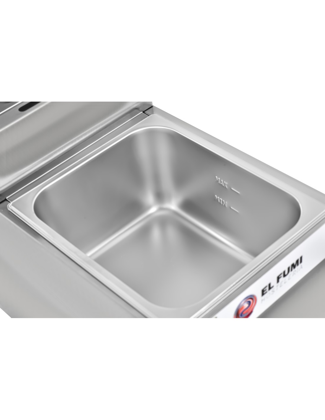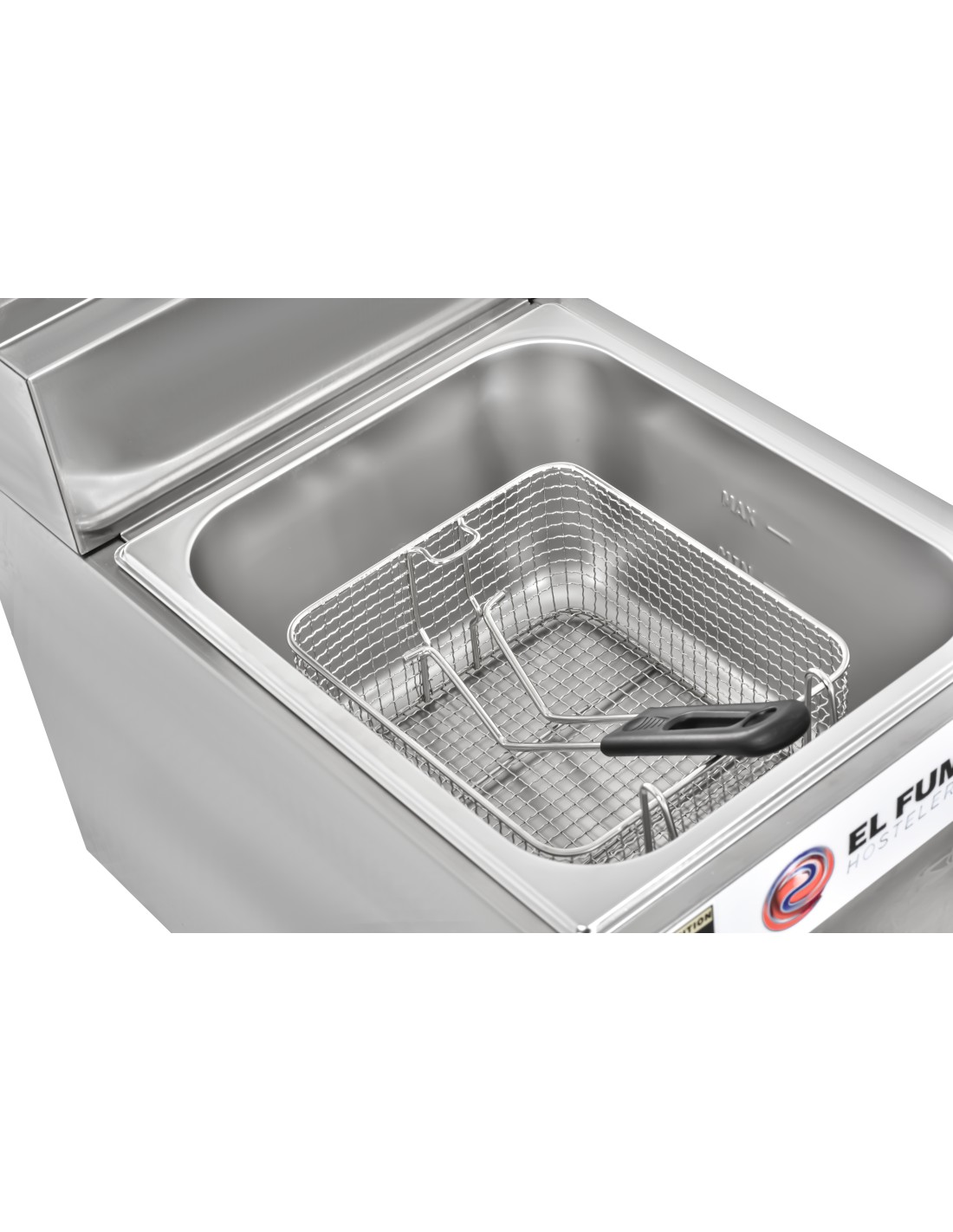 Freidora profesional de 8 litros de capacidad, ideal para cocinas industriales, bares, restaurantes y negocios de hostelería que requieren eficiencia y durabilidad.