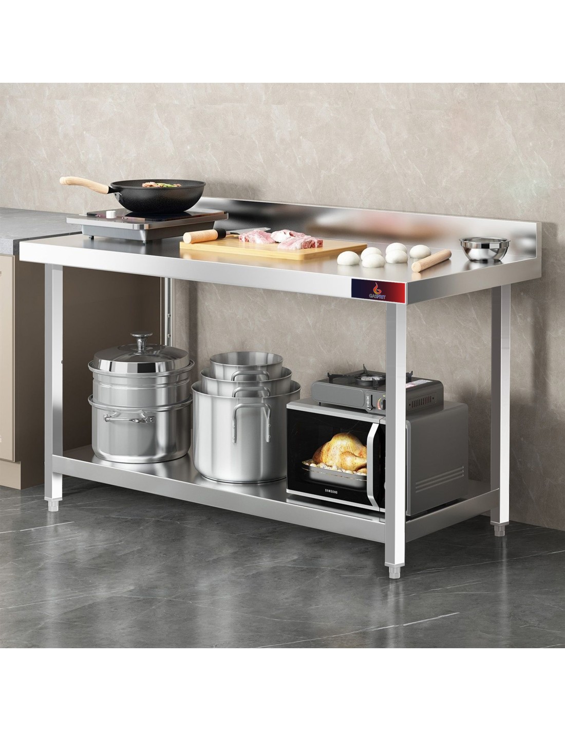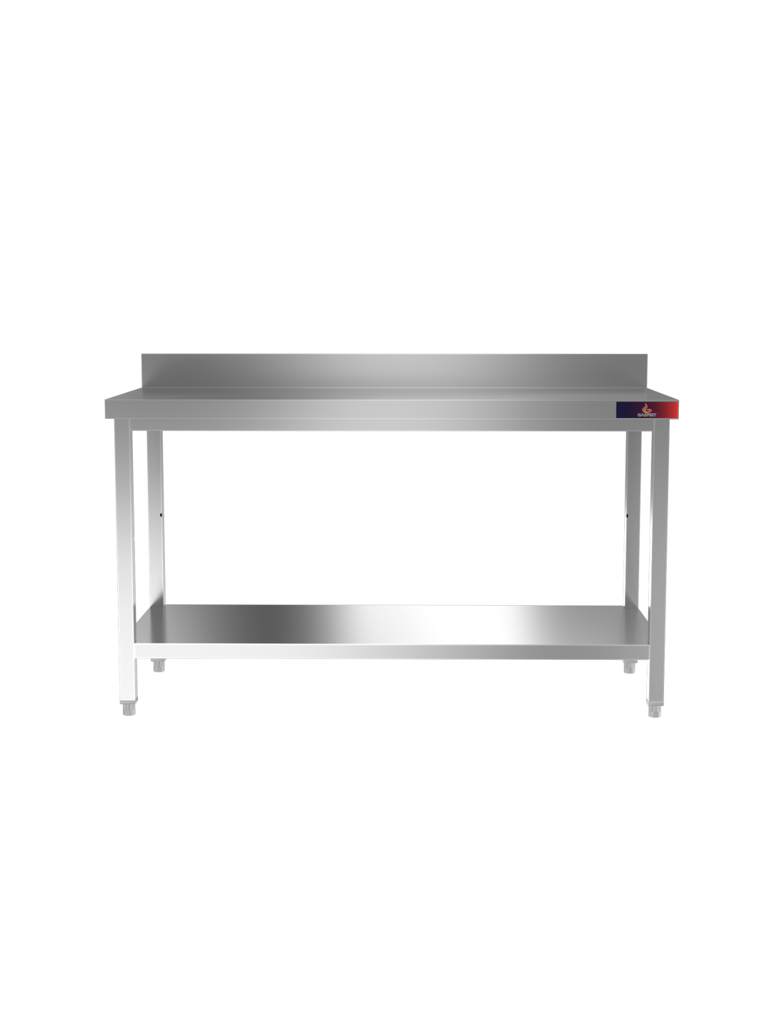 Mesa Mural con 1 Estantes 1500x700x850+ 100 mm| Mesa de Trabajo Profesional de Acero Inoxidable