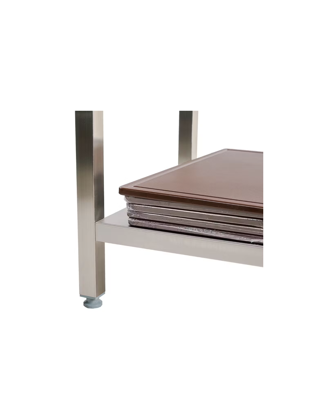 La mesa de trabajo profesional Gasfrit está diseñada para ofrecer resistencia, funcionalidad y durabilidad en cocinas profesionales, talleres y múltiples entornos industriales. Con una estructura robusta en acero inoxidable AISI 201 y dos estantes de gran capacidad, es ideal para la manipulación de alimentos y otras tareas exigentes.