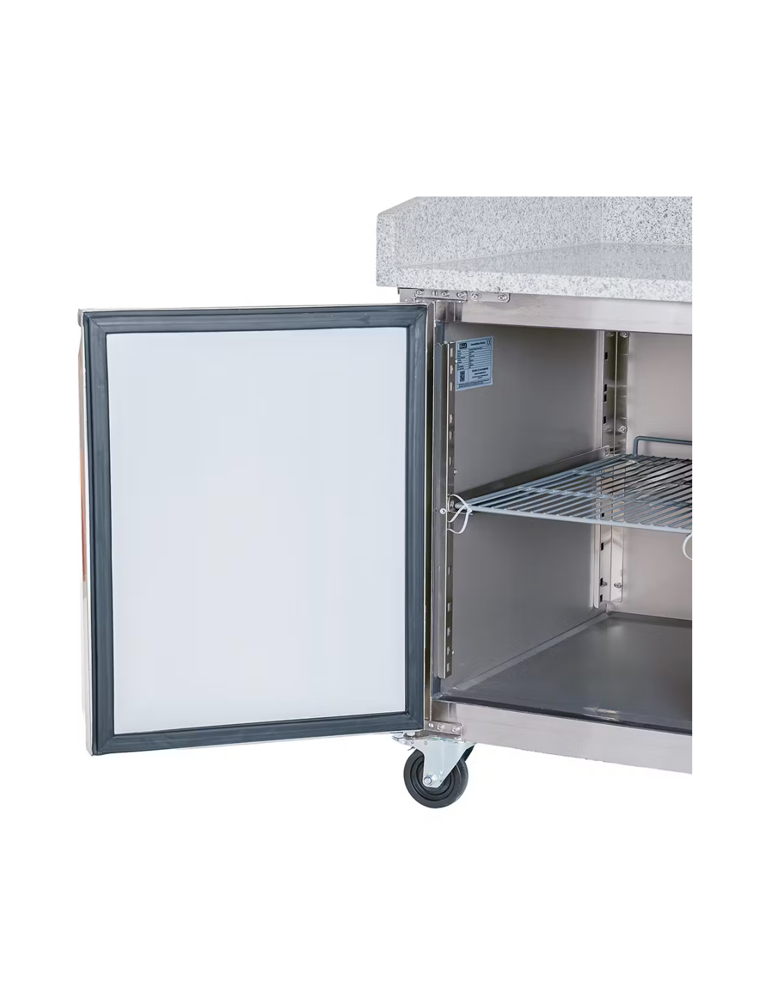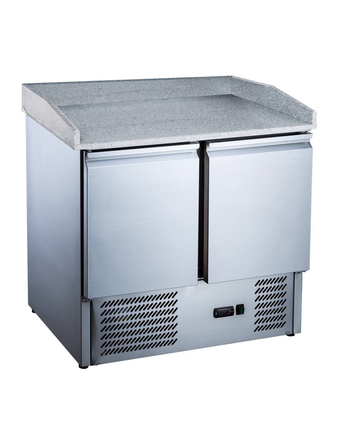 Mesa Pizzera Refrigerada de Preparación de 2 Puertas de 900 x700 x 900 mm con Superficie de Trabajo de Mármol