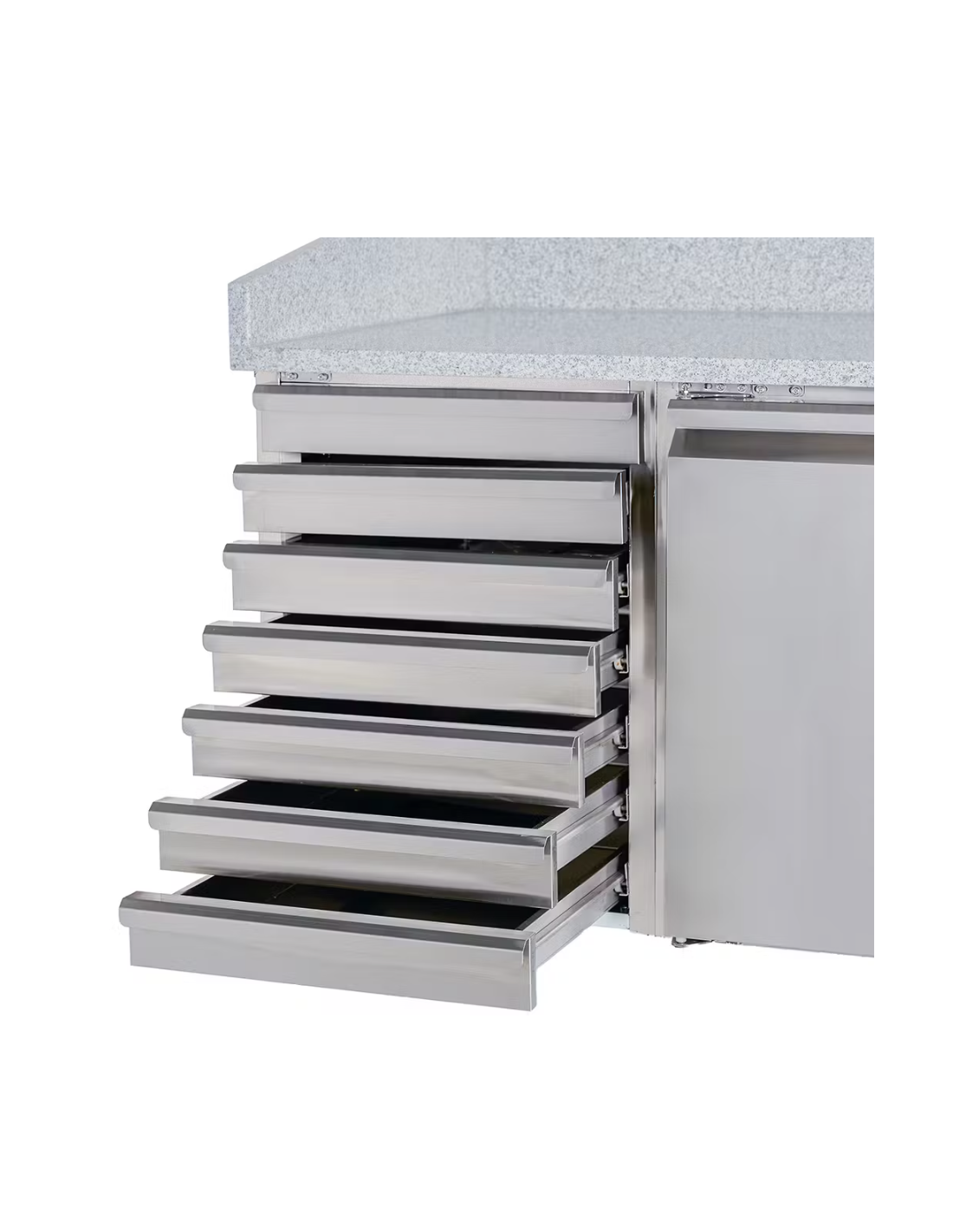 Diseñada para profesionales de la hostelería que buscan máxima capacidad de almacenamiento, durabilidad y una superficie de trabajo perfecta para la preparación de pizzas y masas.