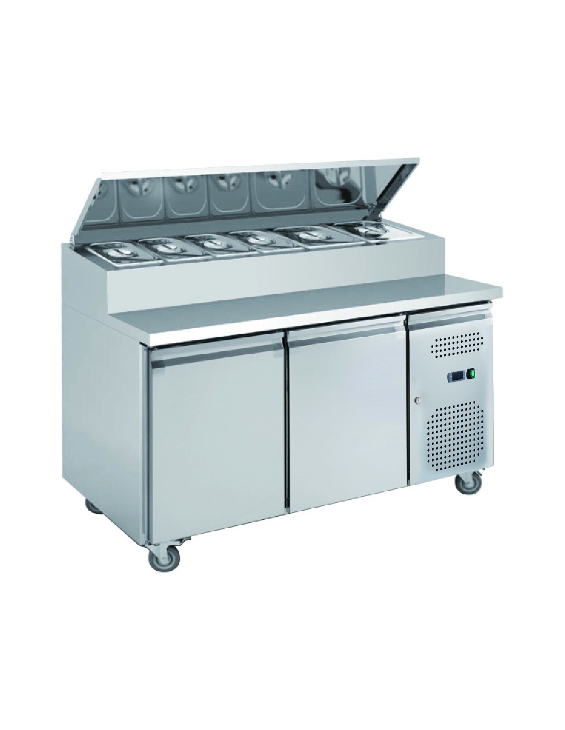 Mesa Ensaladera Refrigerada de Preparación 2 Puertas 1510 x800x1085 mm para Cubetas GN 1/3