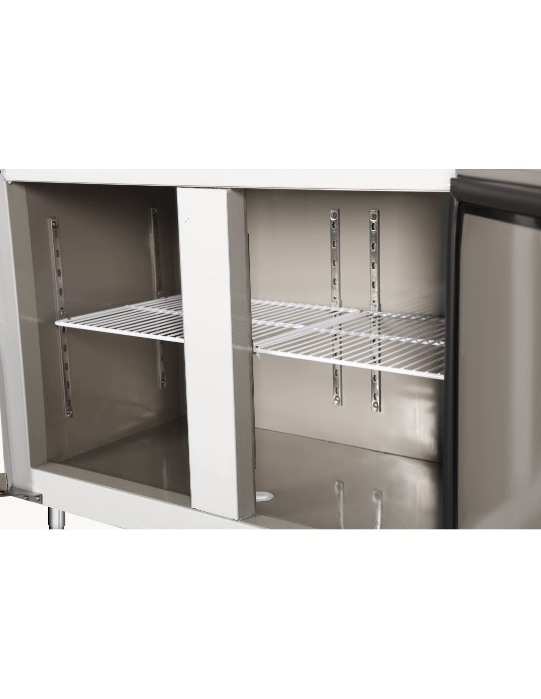 Tipo: Mesa refrigerada con puertas de cristal y peto trasero