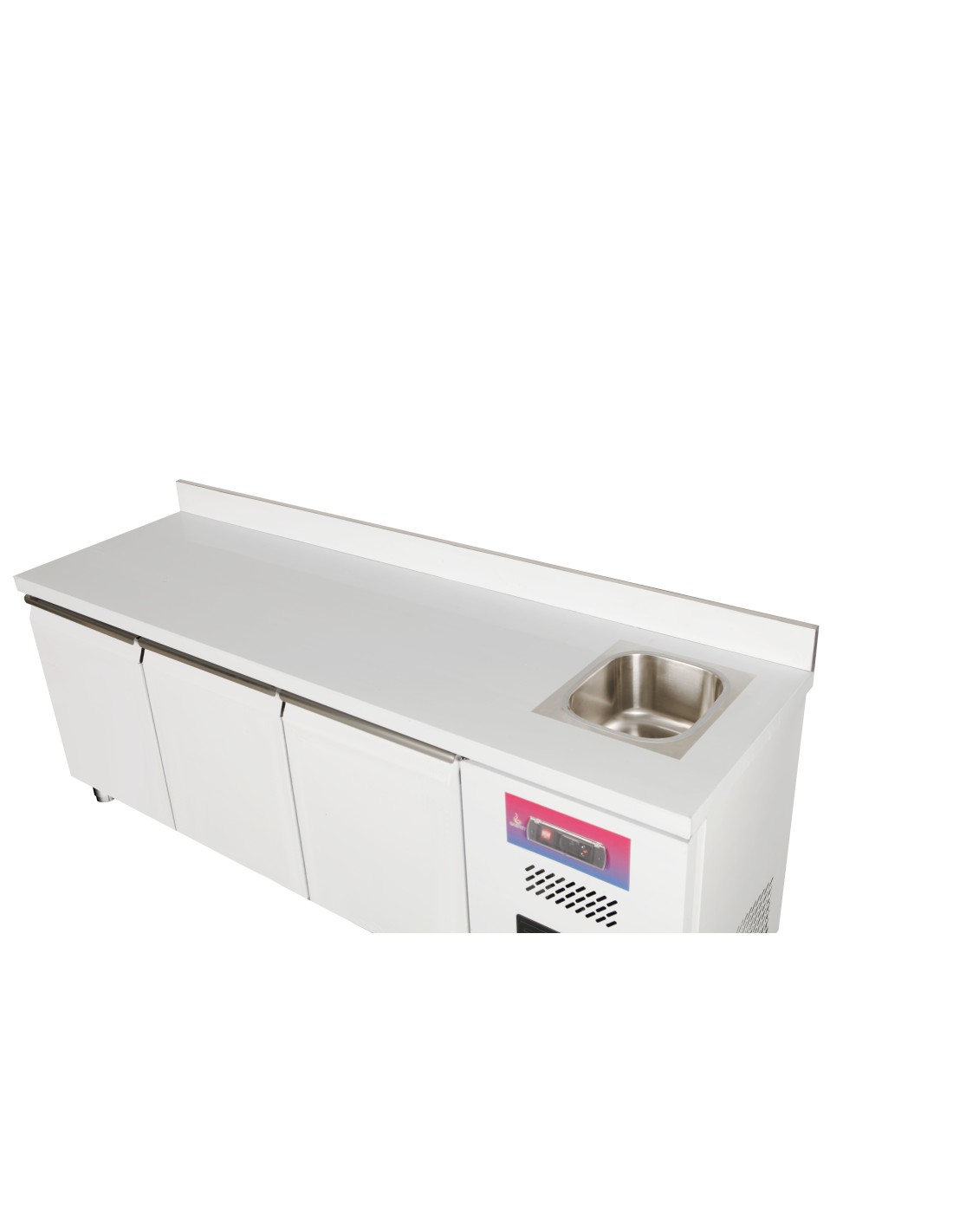 Modelo: Mesa refrigerada con fregadero y peto trasero