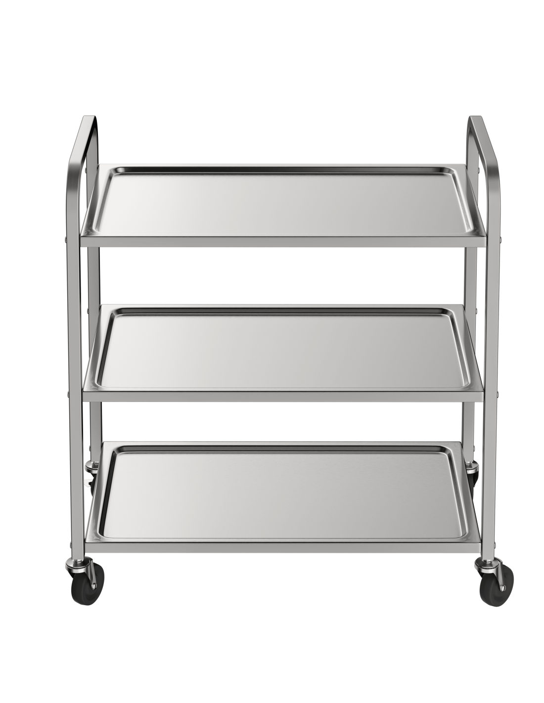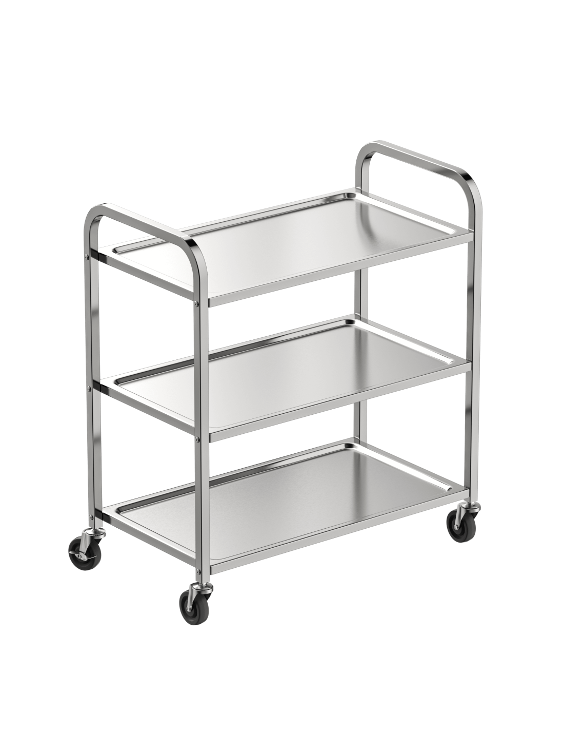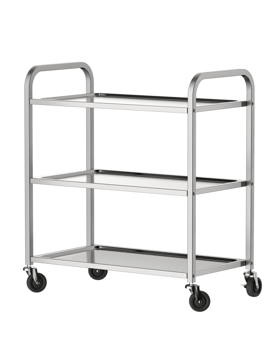 Carro de servicio robusto de acero inoxidable con 3 estantes resistentes
