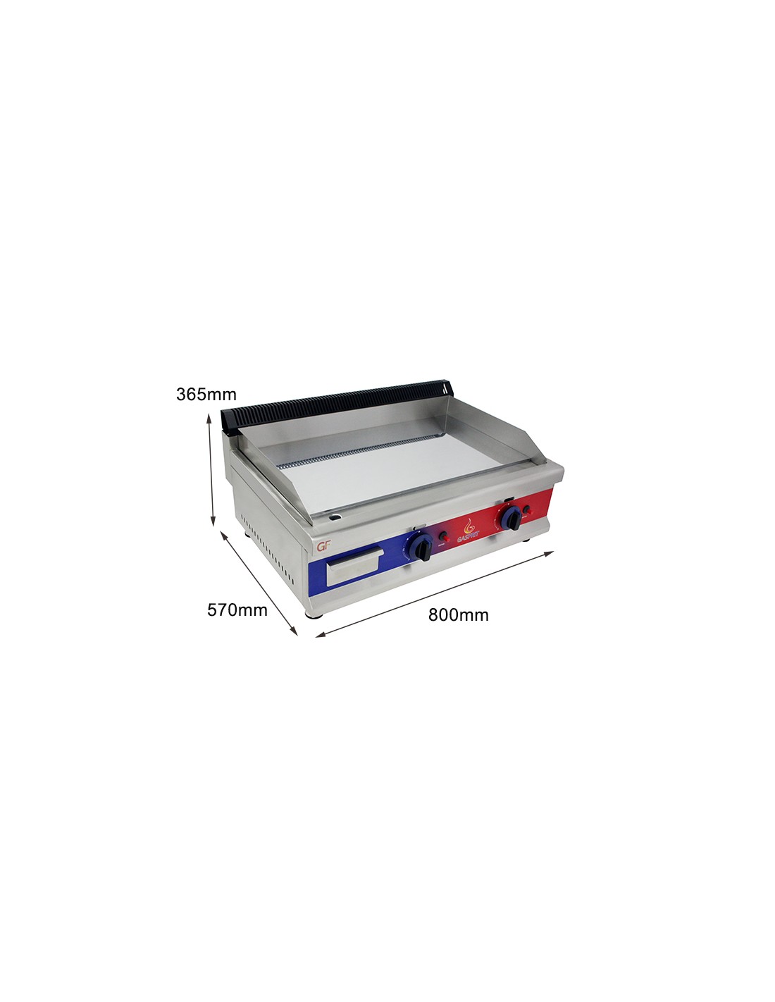 Gasfrit - Plancha de cromo duro de acero inoxidable a gas industrial para restaurante 800 x 575 x 365 mm 6 kw