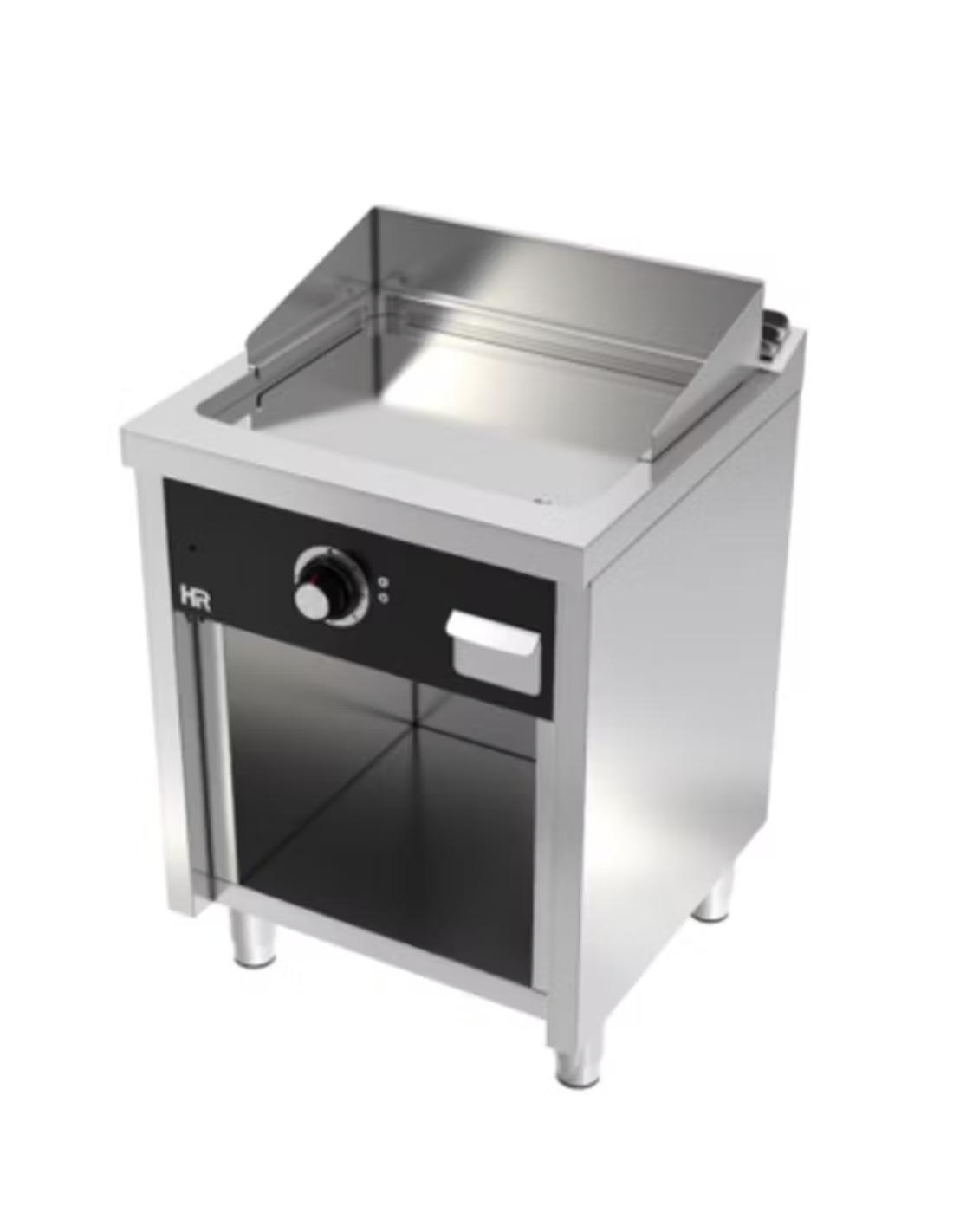 Fry-Top Eléctrico FTE6006ECR de HR Fainca, diseñado para la preparación rápida de alimentos en cocinas profesionales, destacando por su durabilidad y eficiencia en el calentamiento.