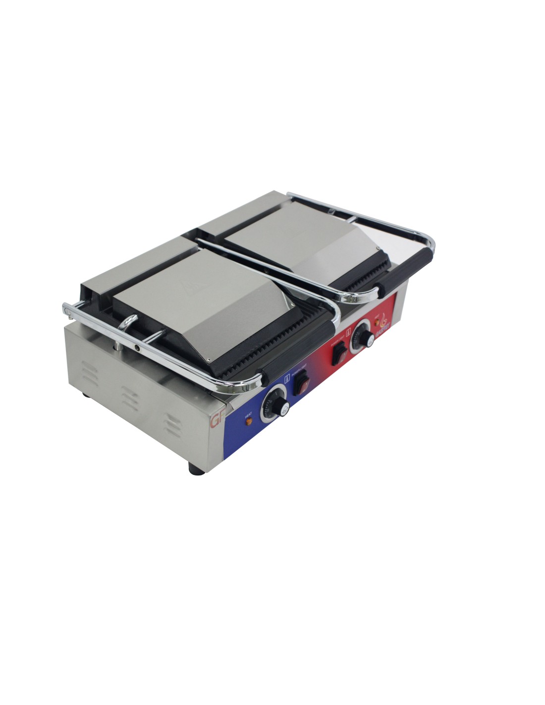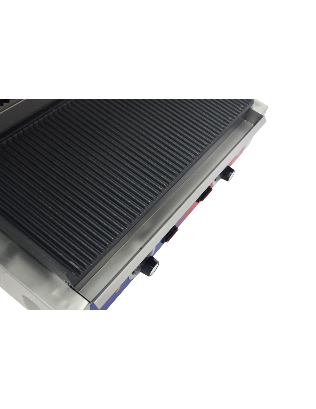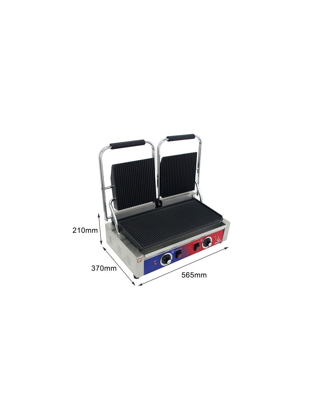 Grill eléctrico plancha de contacto doble profesional de 565 x 370 x 210 mm con termostato E.G.O