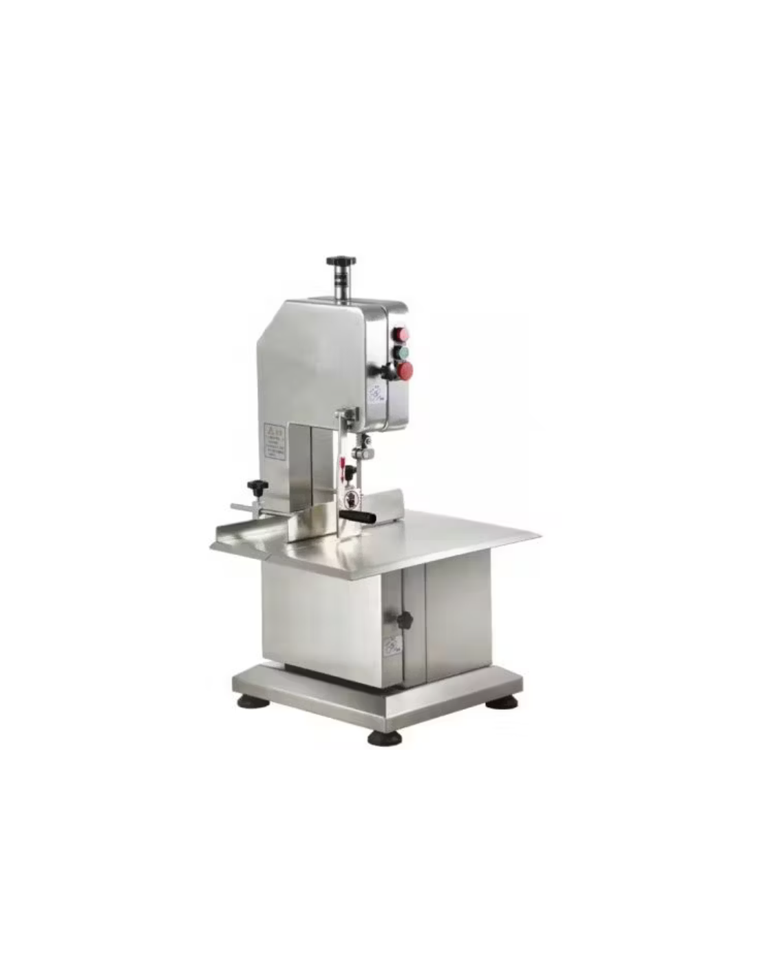 Sierra profesional con 1 ,5CV de potencia. - Sierra integrada de acero inoxidable. - Gran robustez y fiabilidad de la máquina. - Tensado de cinta automático. - Fácil limpieza. MEDIDAS: - Ø Polea: 210 mm - Ancho: 550 mm - Altura: 960 mm - Profundo: 1900 mm - Ancho del Plato: 437 mm - Profundo del plato: 465 mm - Altura máx. de corte: 240 mm - Ancho máx. de corte: 165 mm - Peso: 37 Kg - Motor : 1 CV. Monofásico - Desarrollo de Cinta: 1.650 mm INCLUYE: - Brazo empujador - Motor de 1,5CV. Monofásico - Poleas en Acero Inoxidable.