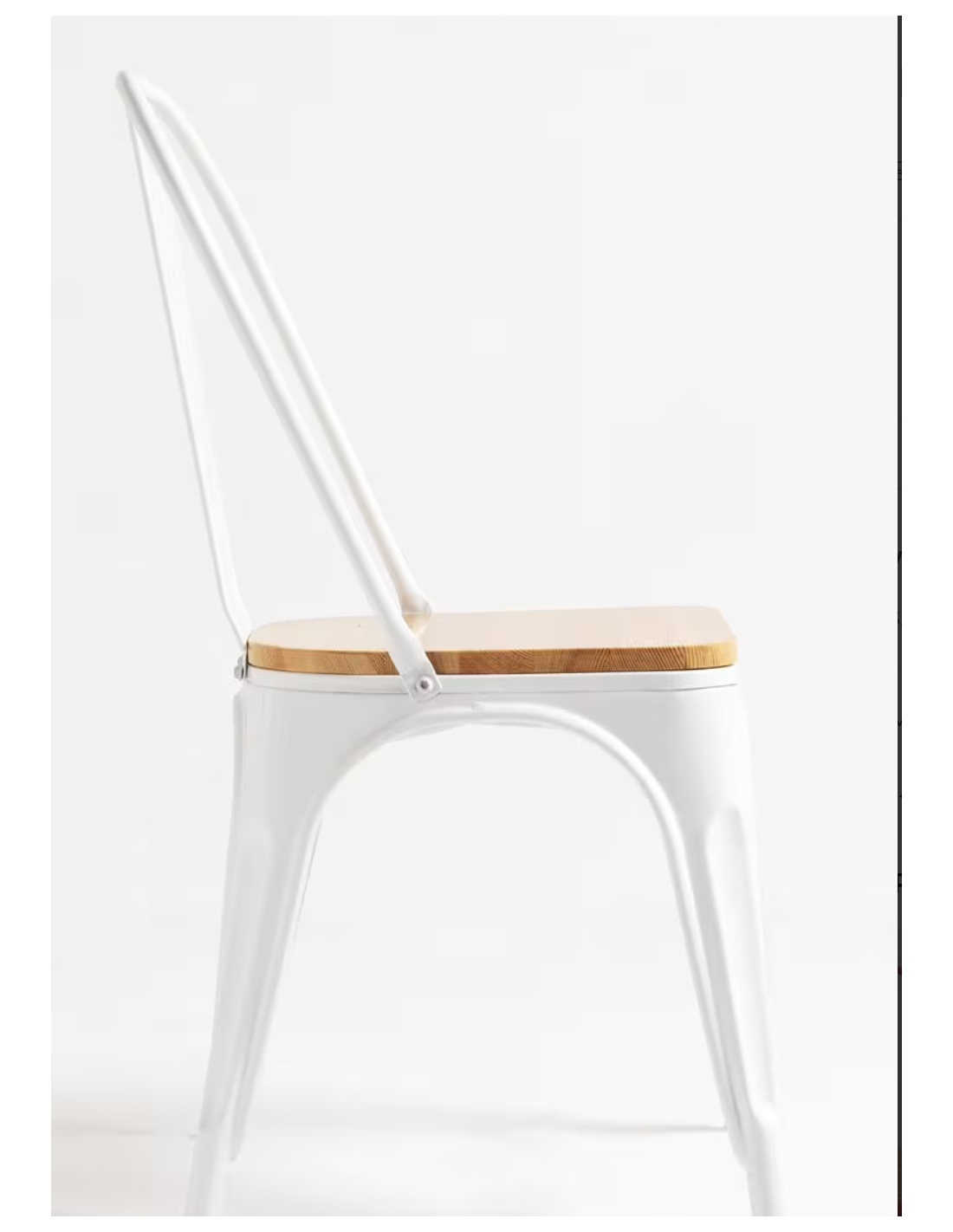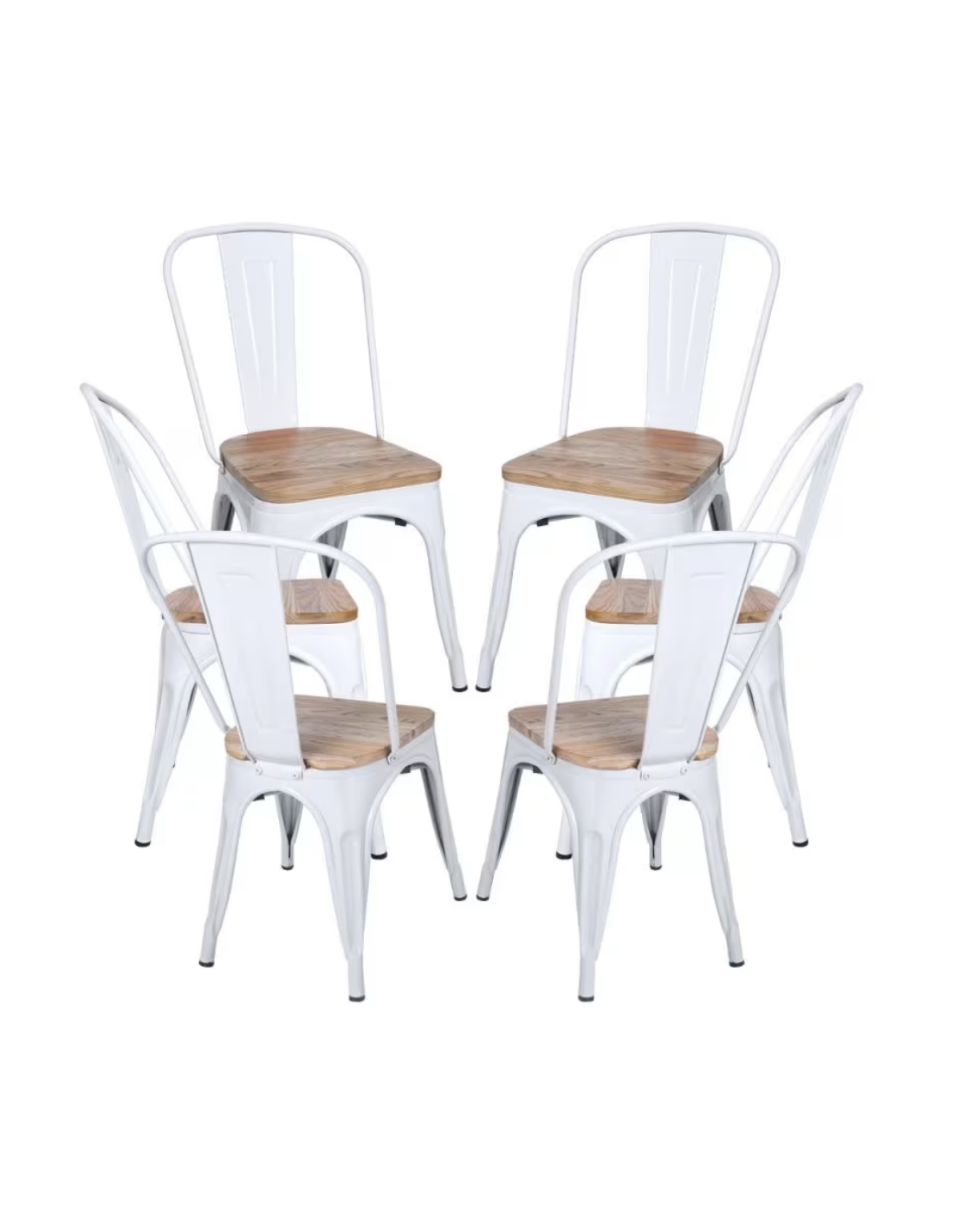 Pack 6 Sillas Industriales Strong | Acero con Asiento de Madera | Apilables | Color Blanco | Diseño Vintage-Industrial