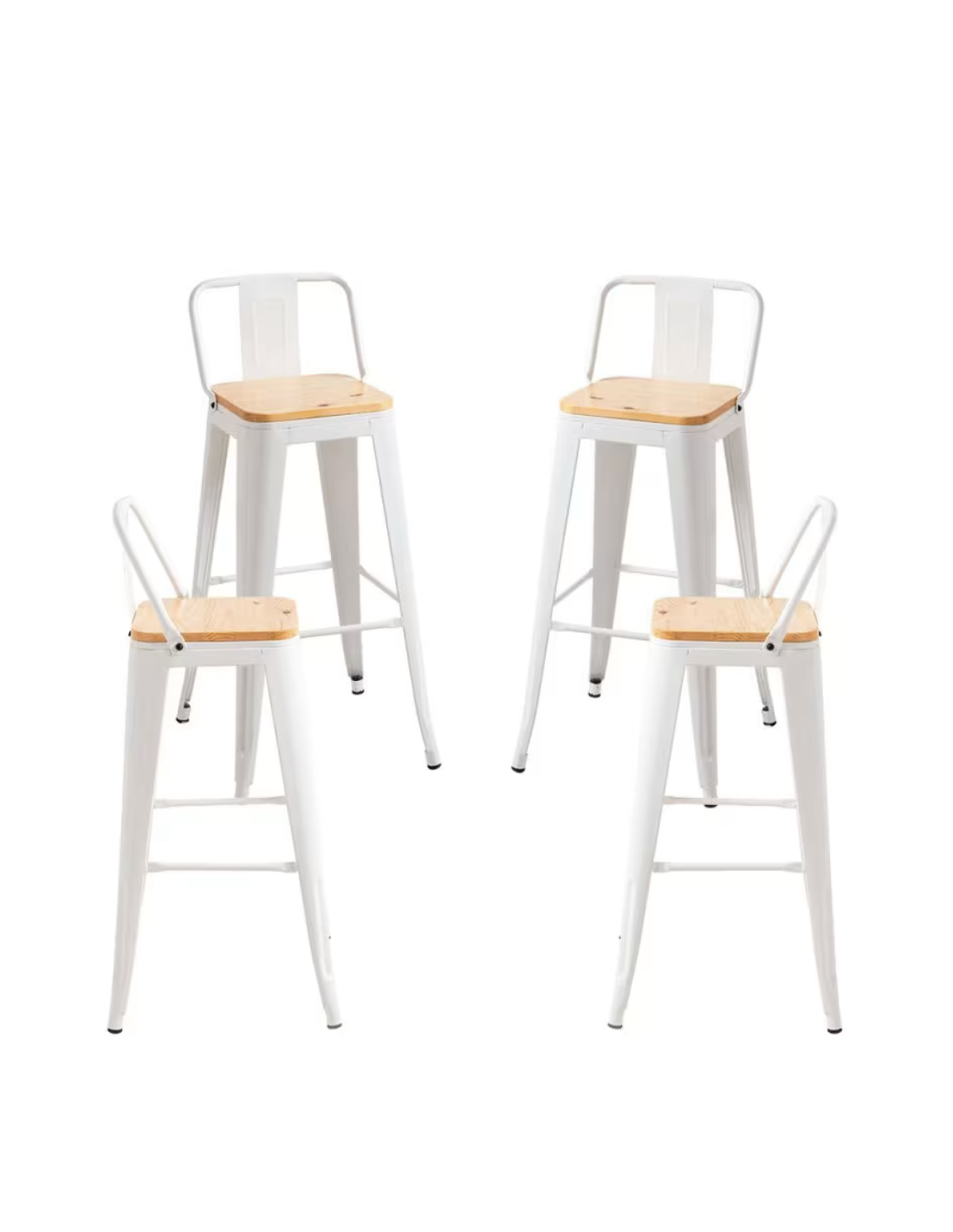 Juego de 4 Taburetes de Bar de Estilo Industrial con Respaldo y Asiento de Madera Clara – Gasfrit