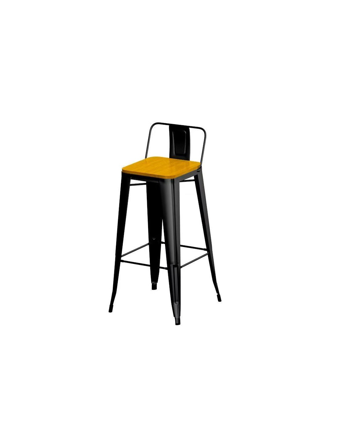 taburete de bar de metal negro mate con asiento de madera y respaldo 400 x 400 x 930 mm pack 6 unidades