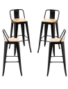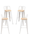Juego de 2 Taburetes de Bar Industriales | Metal Blanco Mate y Asiento de Madera Clara | Con Respaldo | Altura 96 cm