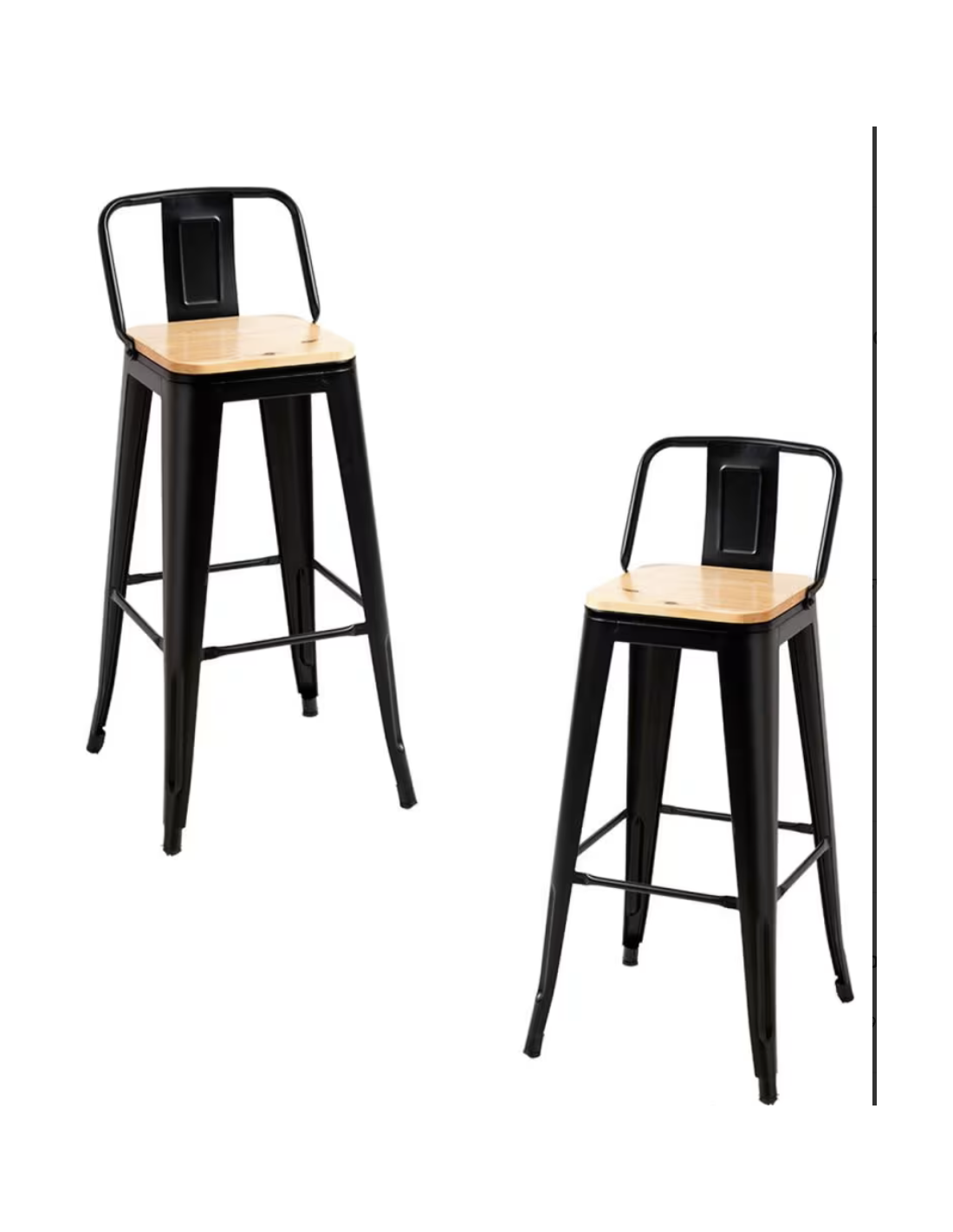 Pack de 2 taburetes altos con diseño industrial moderno, perfectos para barras de bar, cocinas abiertas o mesas altas.