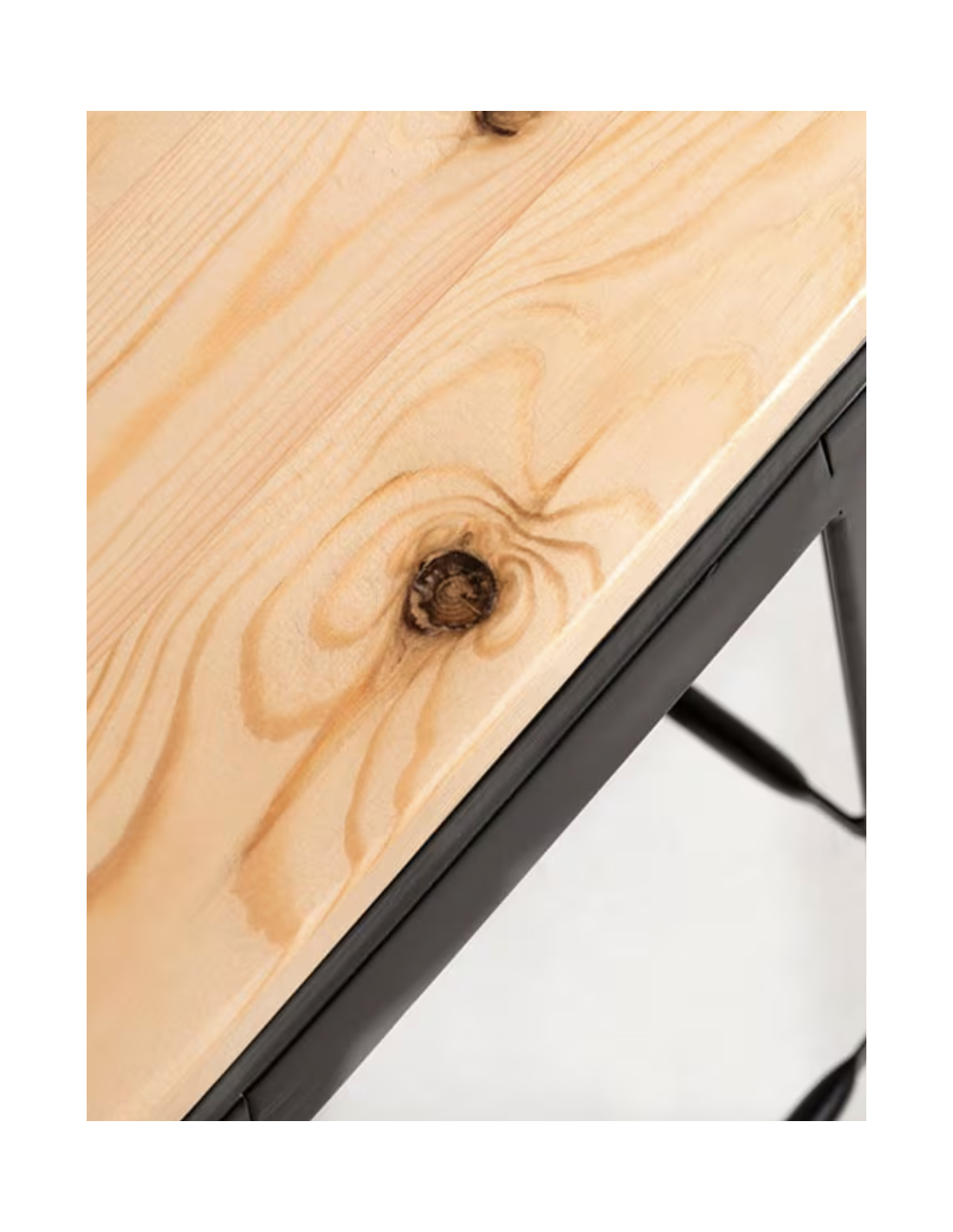 Asiento de madera clara, cómodo, cálido y con acabado natural que aporta contraste decorativo.