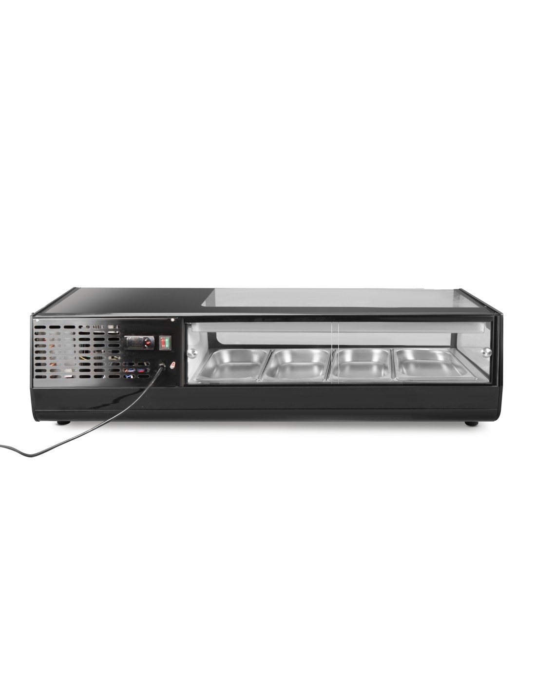 - Disponible con 4cubetas GN1/3 (no incluidas) y 1160 x 420 x 315 mm.