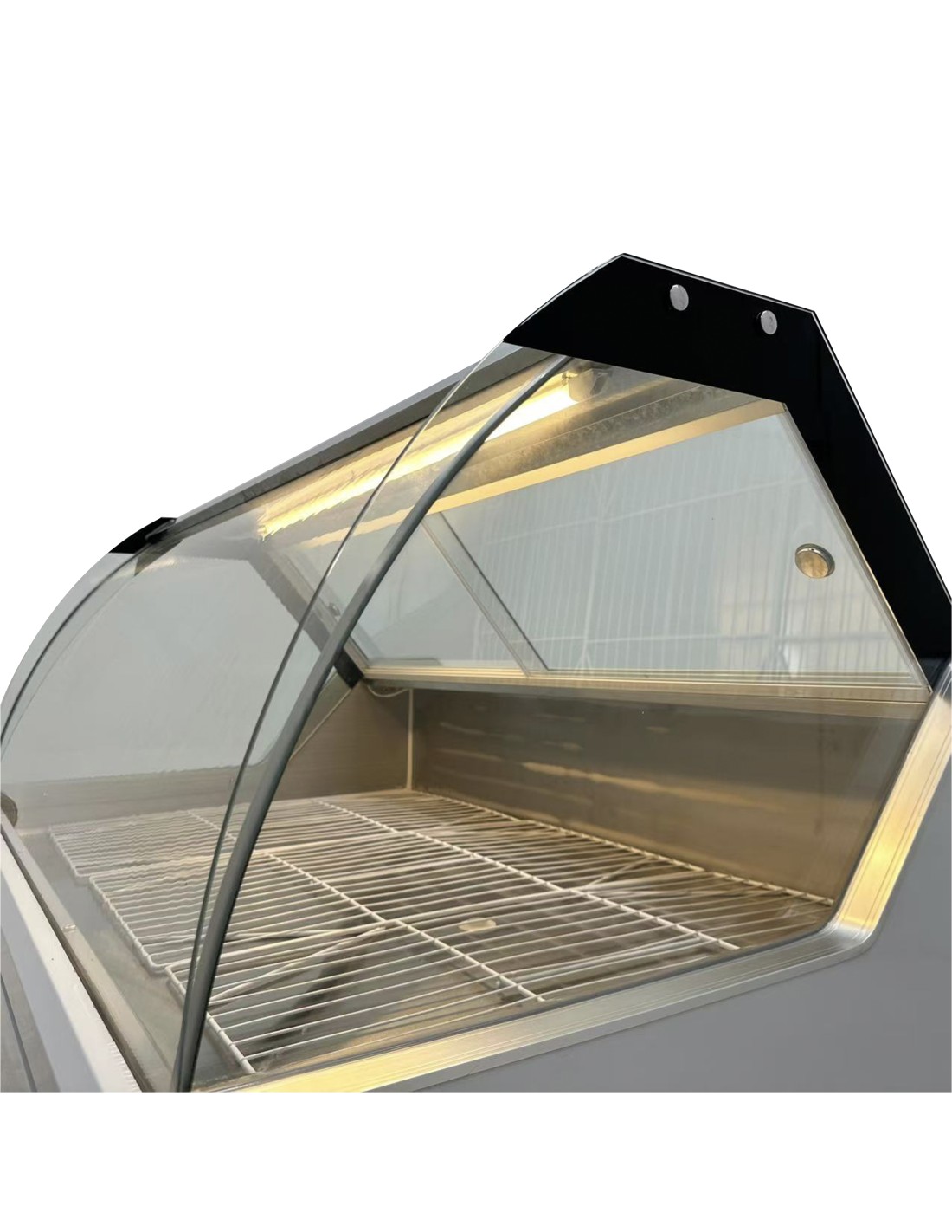 Su sistema de refrigeración estática garantiza una conservación óptima de embutidos, quesos, productos cárnicos y alimentos frescos, manteniendo su calidad y frescura por más tiempo. El cristal frontal curvo aporta una estética superior y una visibilidad excepcional, permitiendo a los clientes observar claramente cada producto expuesto.